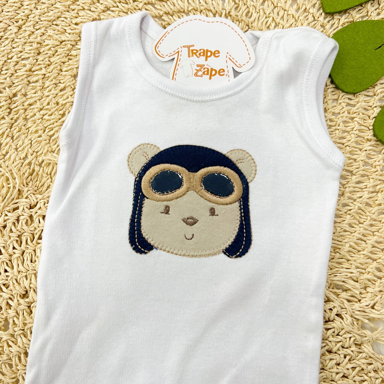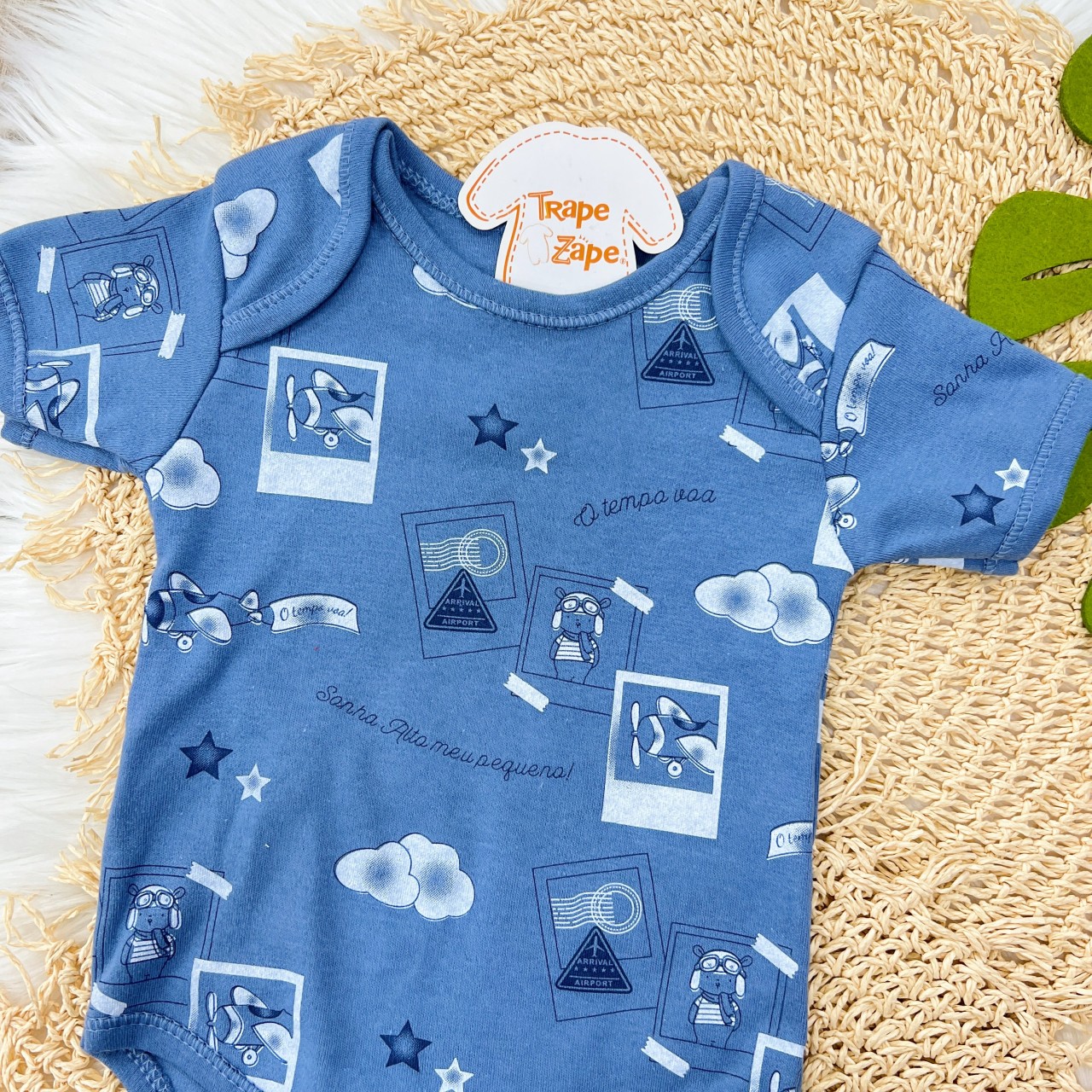 01 - Body Malha Suedine Manga Curta Aviões - 100% Algodão