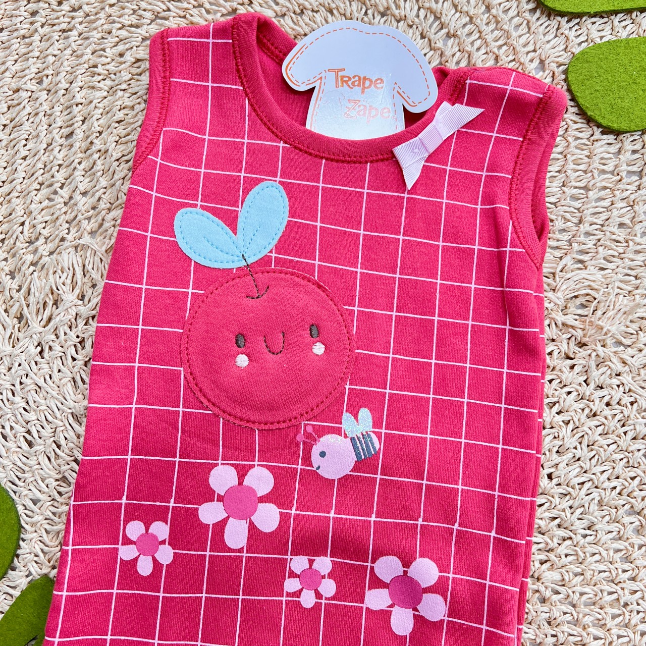 01 - Body Malha Suedine Manga Curta Cerejinhas - 100% Algodão