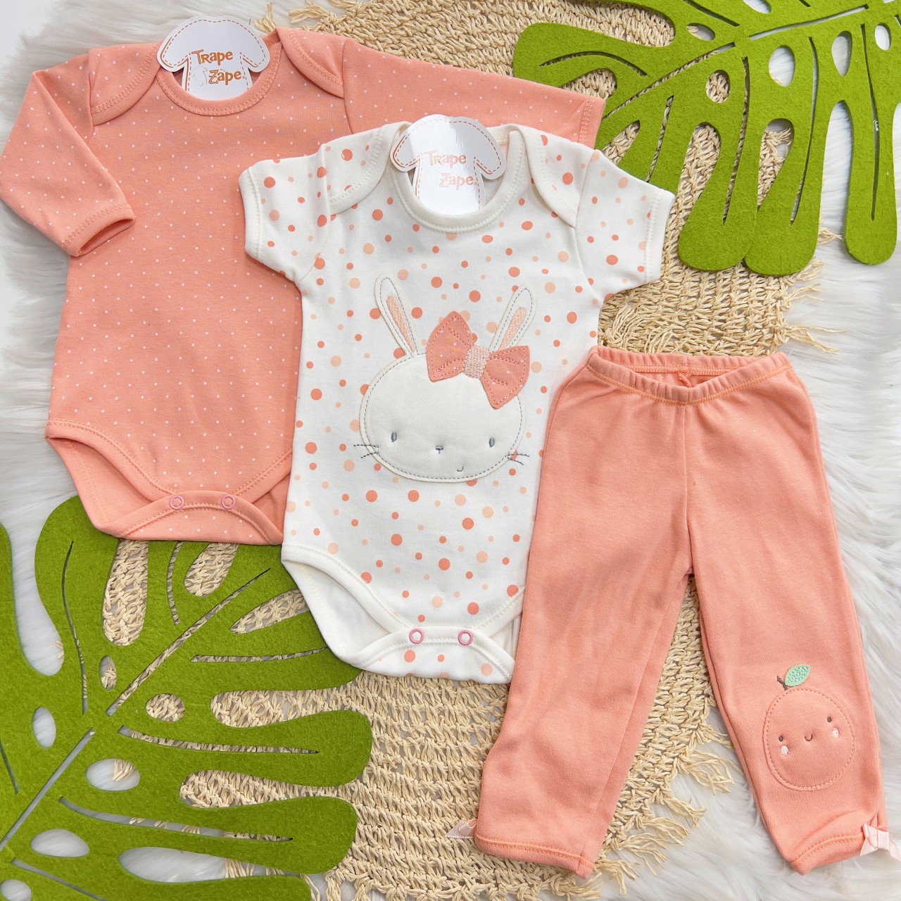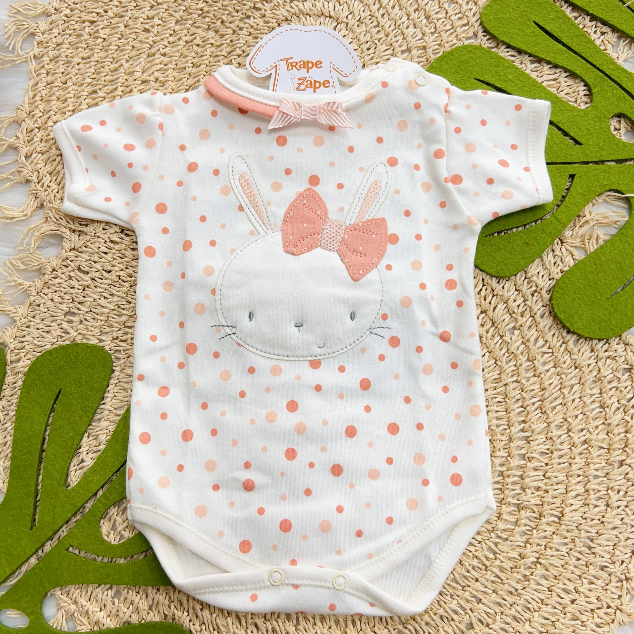 01 - Body Malha Suedine Manga Curta Coelha de Laço- 100% Algodão