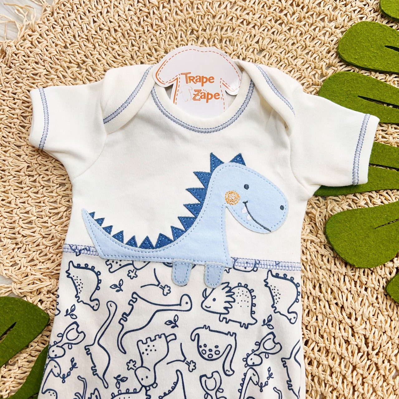 01 - Body Malha Suedine Manga Curta Dino - 100% Algodão