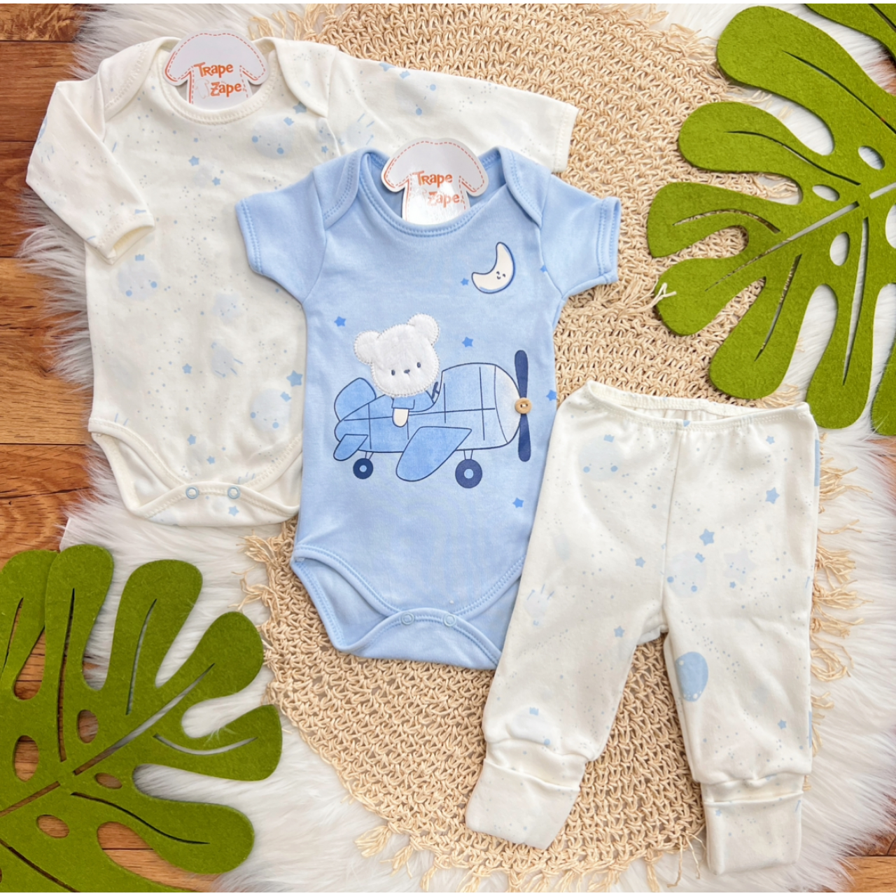 Tags:CONJ., MALHA, PEÇAS, Ursinho, Aviador, White, Claro
