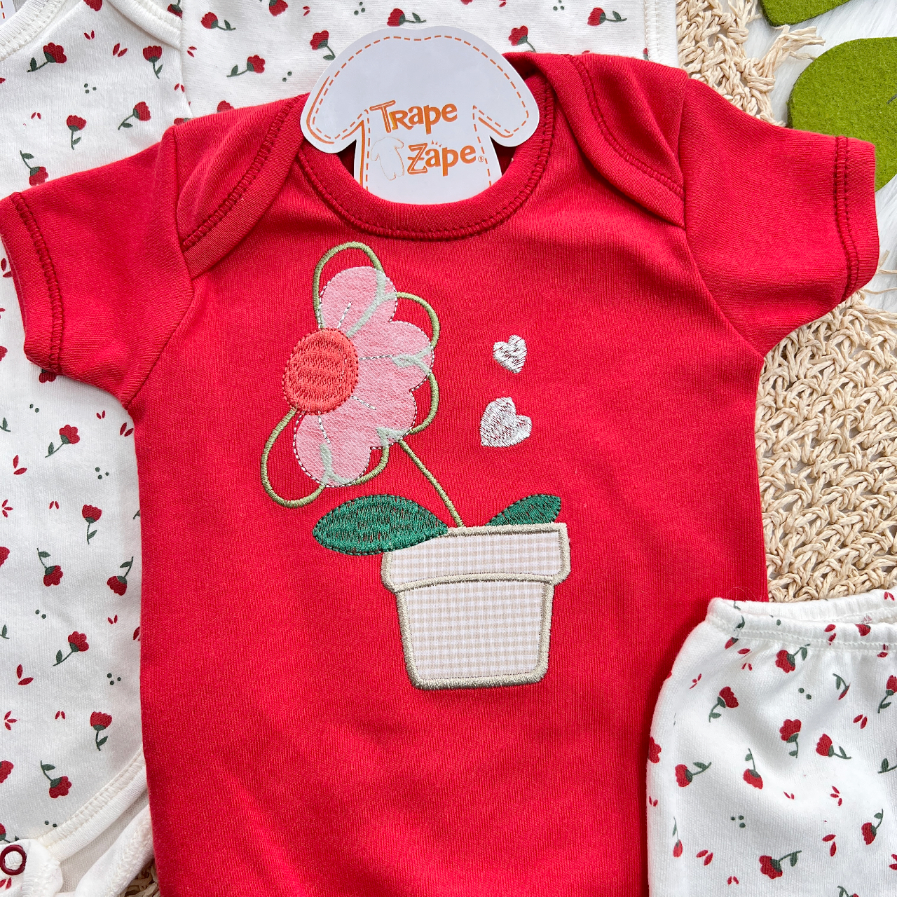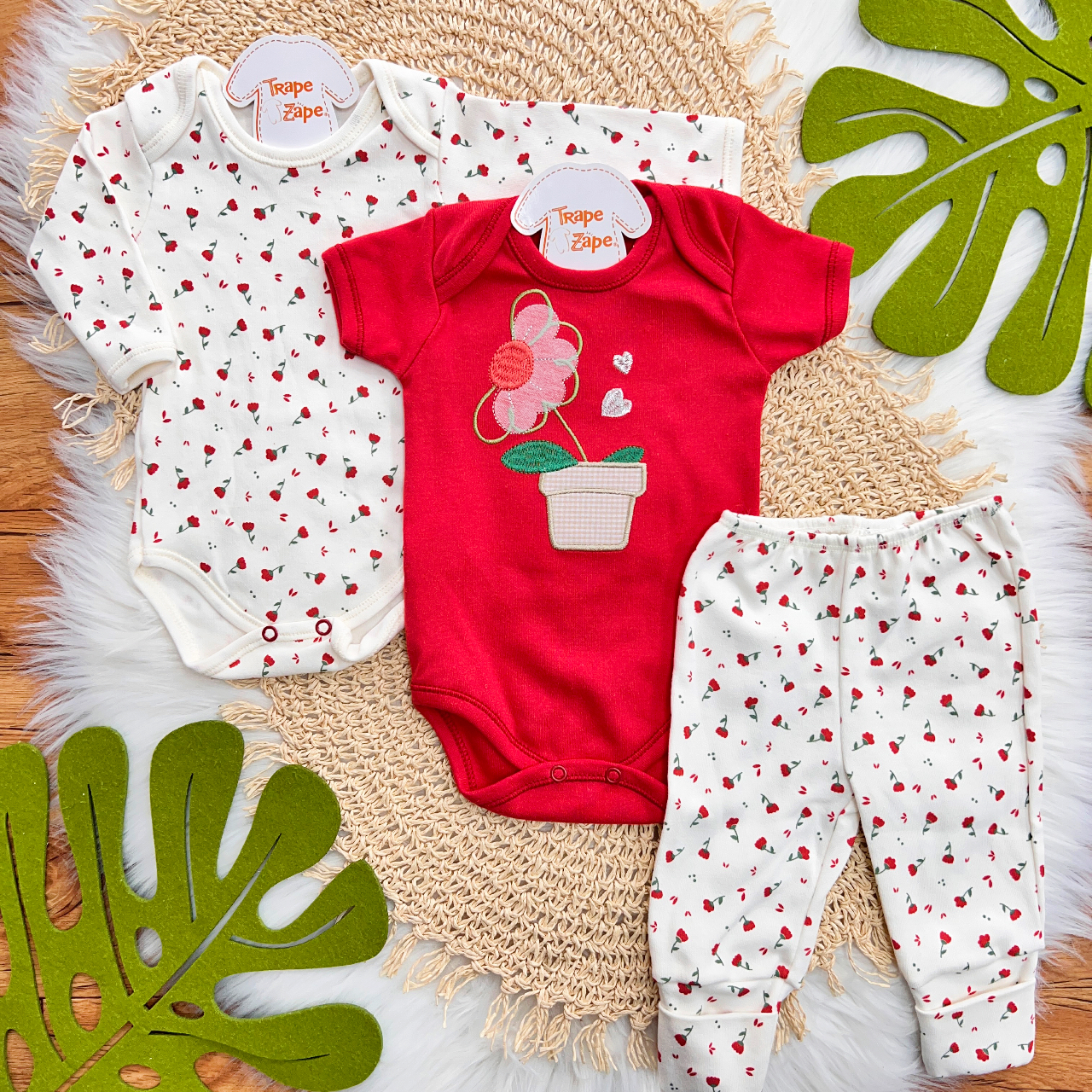• Modelo: Conj. de Malha 3 peças - Vaso de Flores - Vermelho e Off