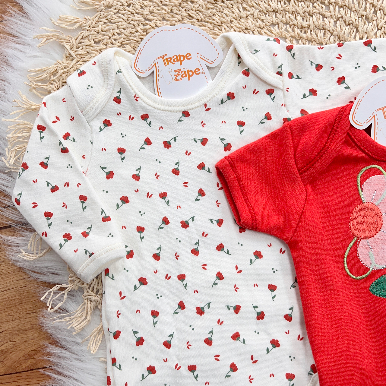 Tags:Conj., Malha, peças, Flores, Vermelho, White