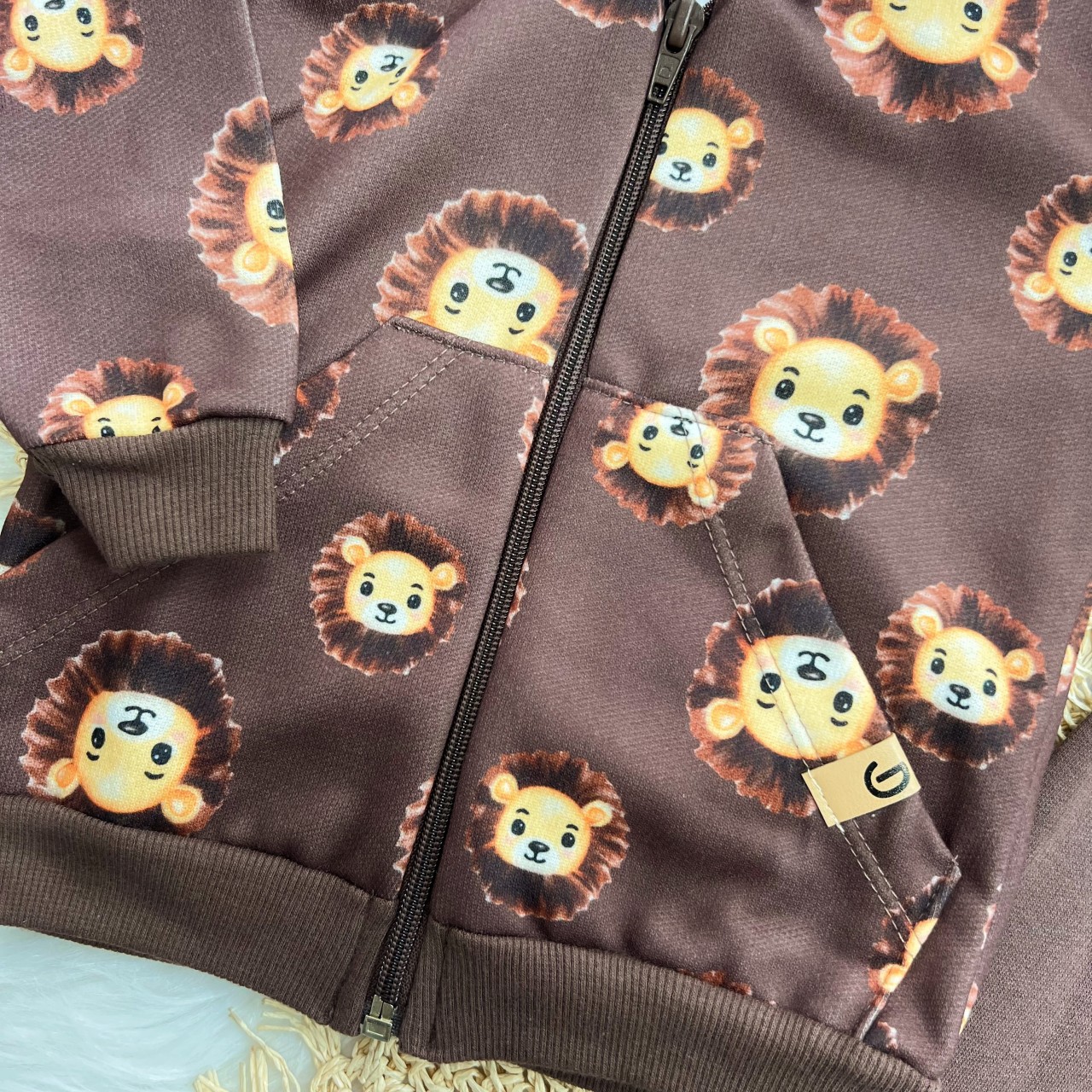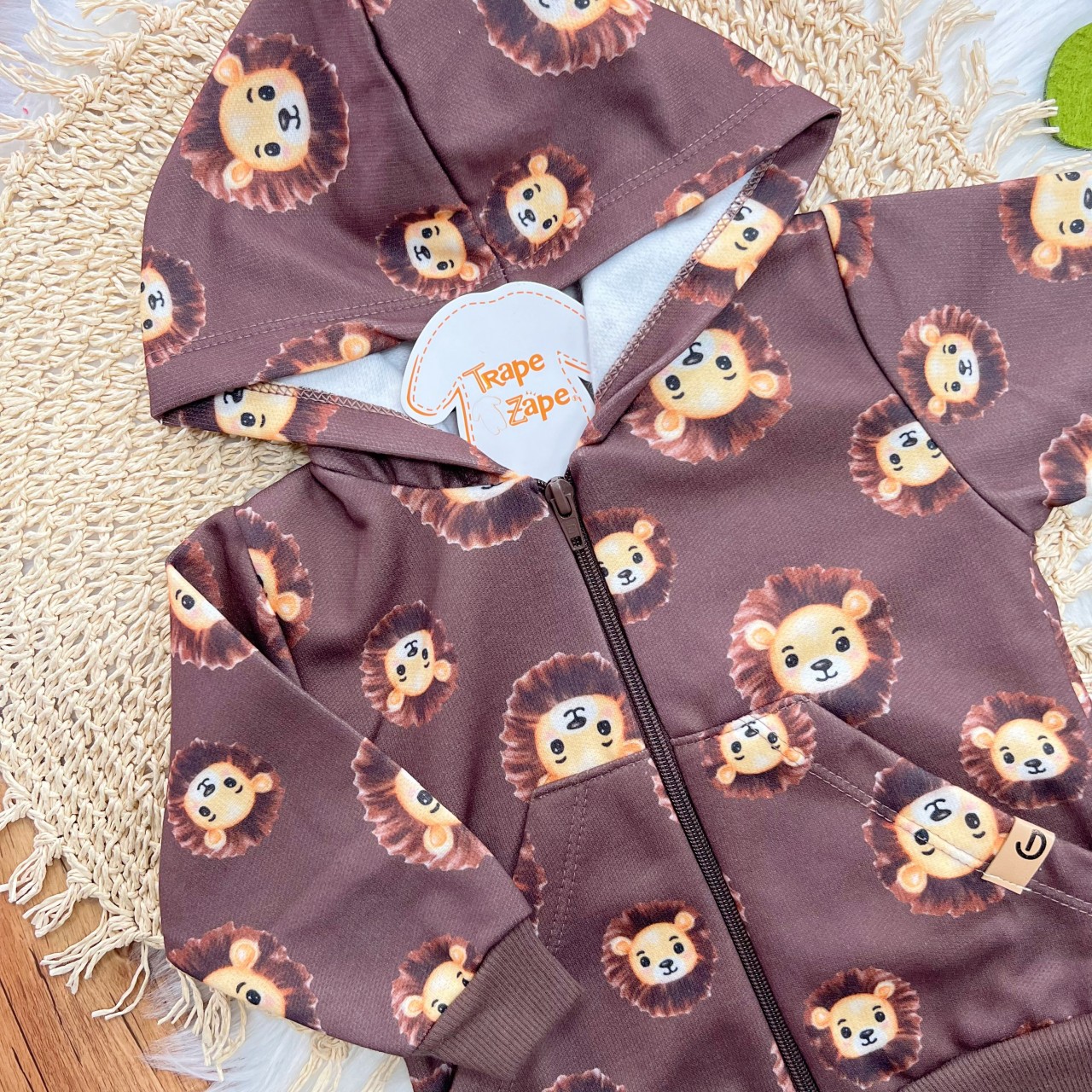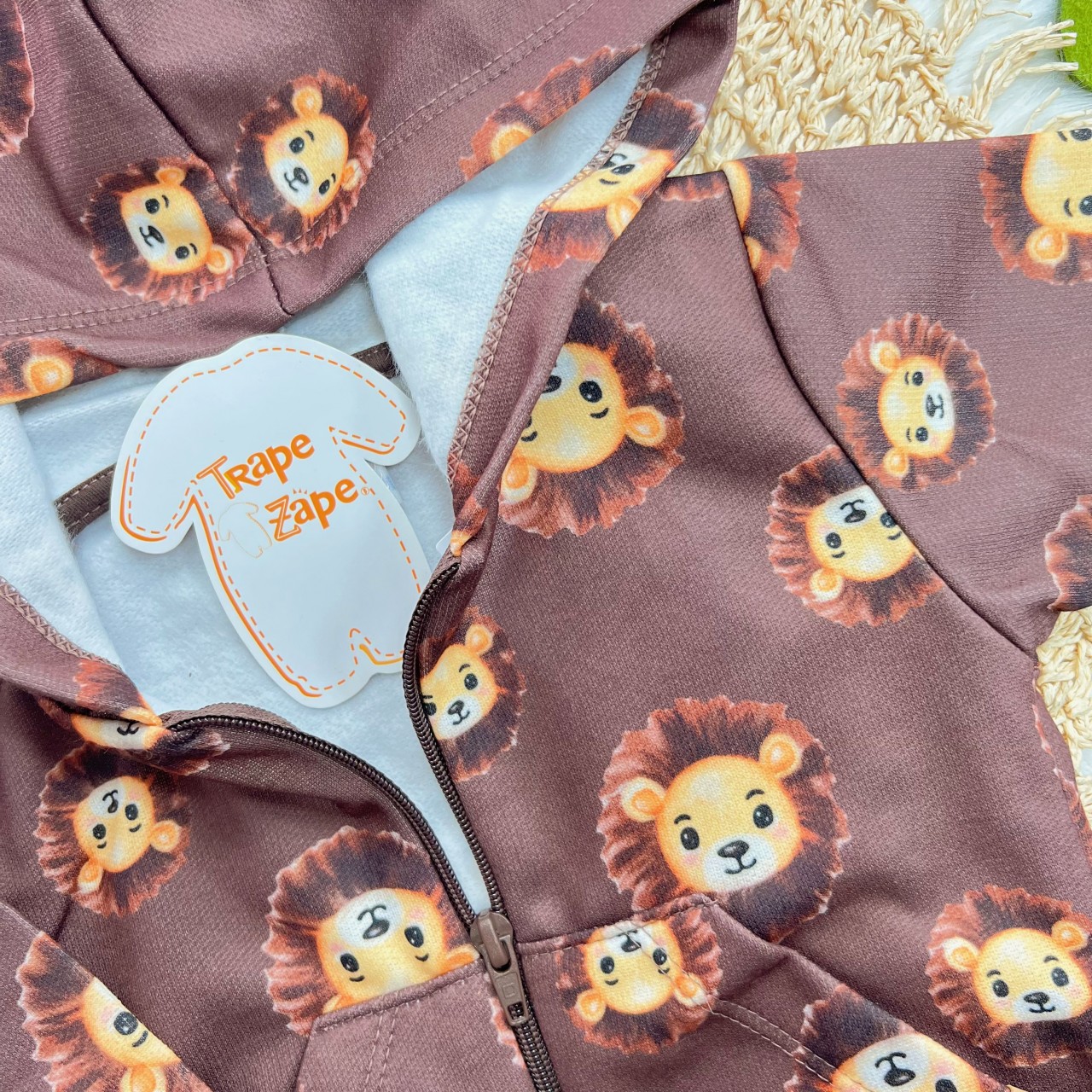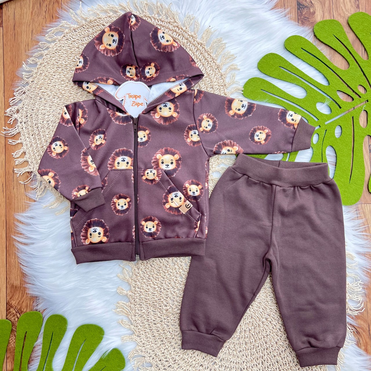Tags:Conj., Jaqueta, Capuz, Leões, Calça, Moletom, Marrom