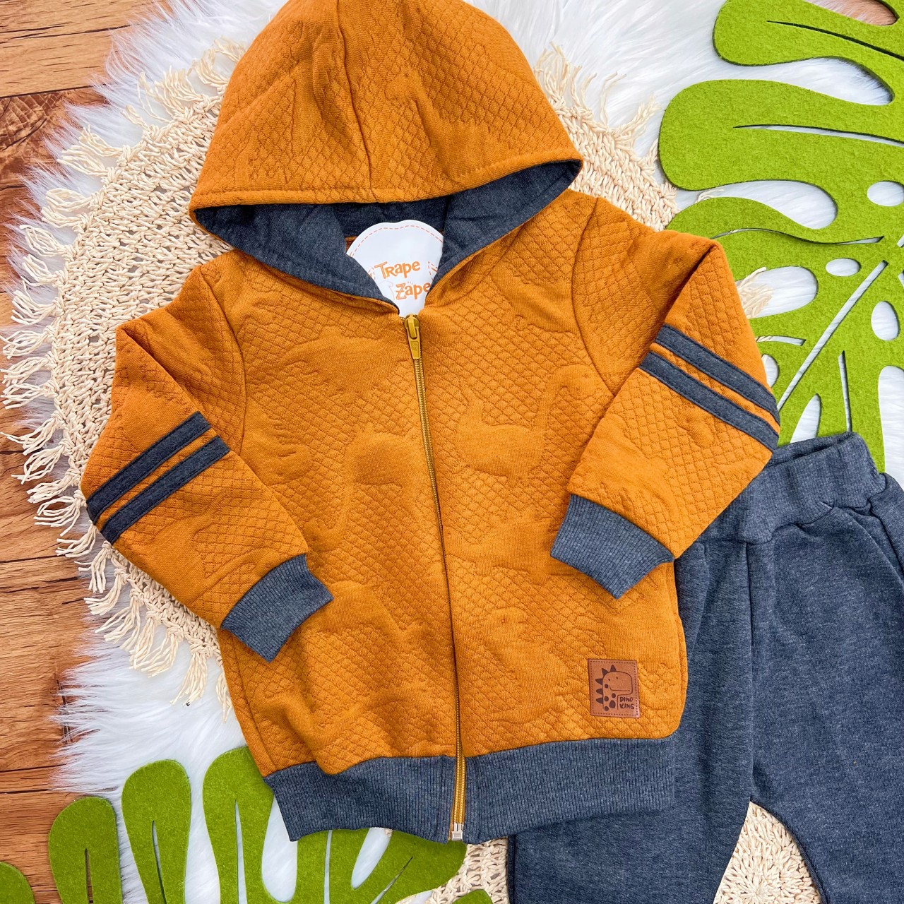 Tags:Conj., Jaqueta, Capuz, Calça, Moltom, Ferrugem, Chumbo