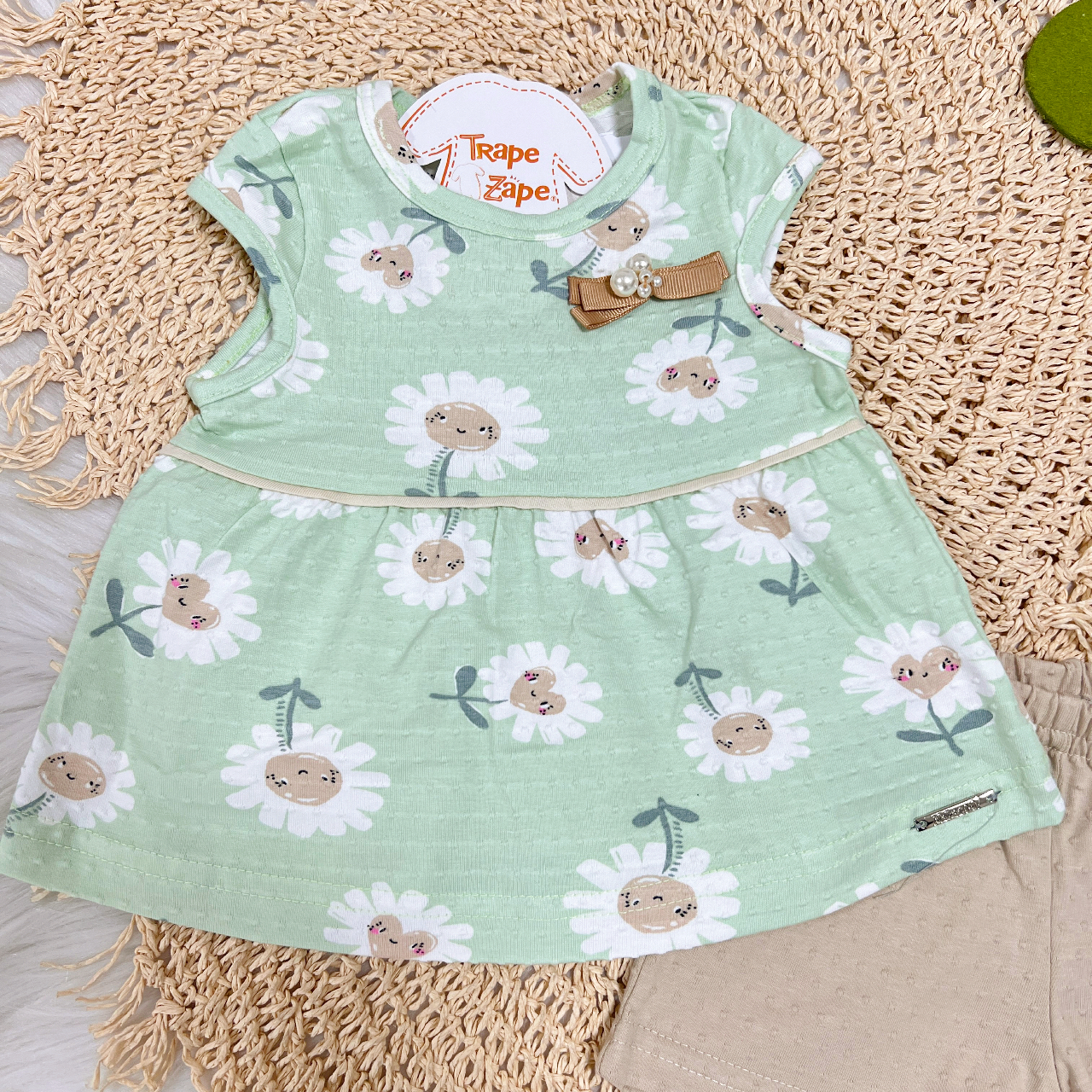 Tags:Conj., Regata, Florzinhas, Short, Verde, Areia
