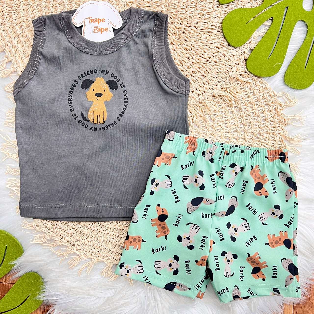 01- Regata em Malha - 100% Algodão01- Bermuda em Táctel - 94% Poliéster 6% Elastano