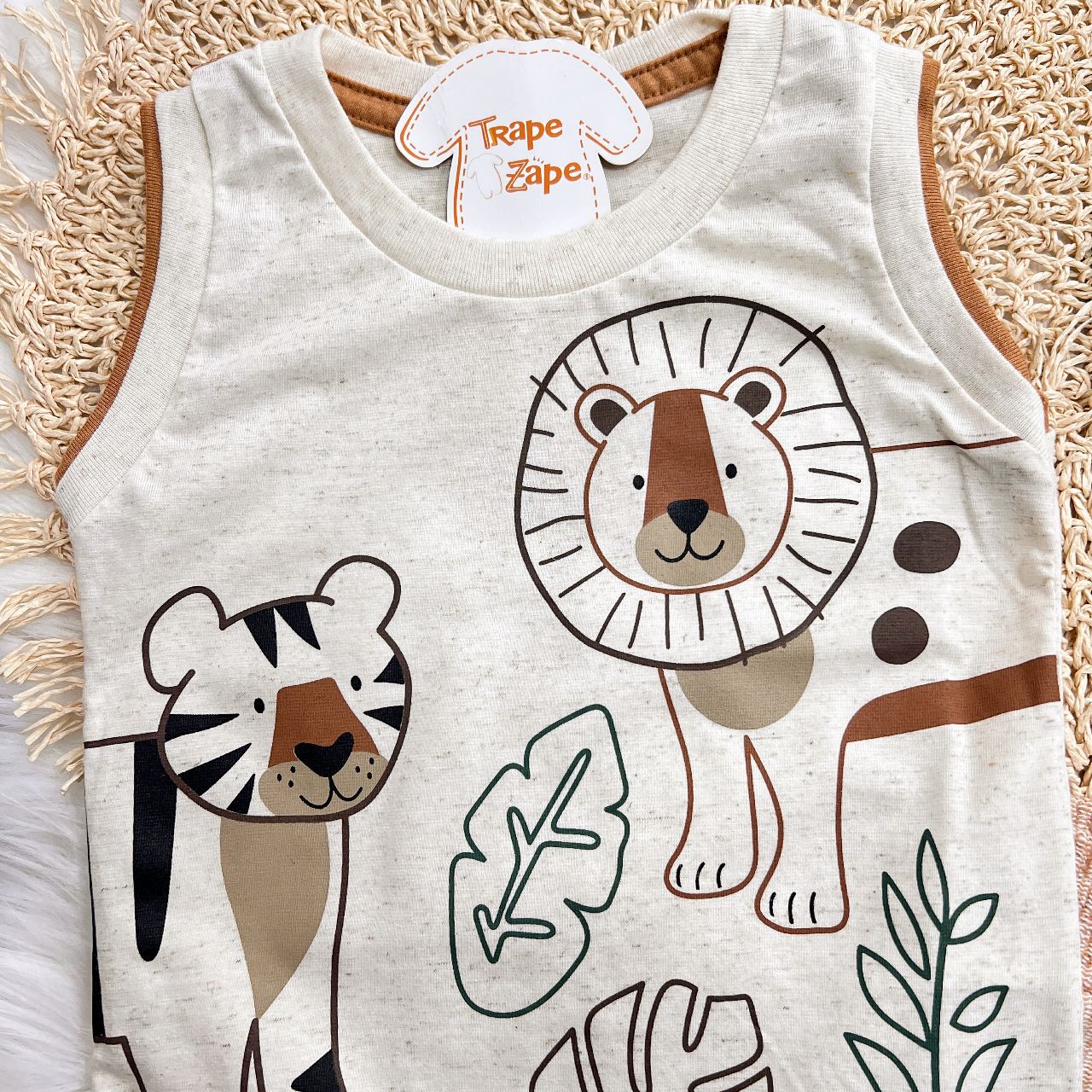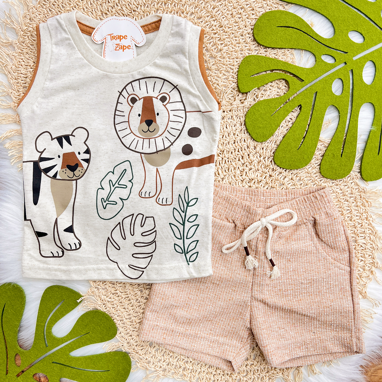 01- Regata em Malha - 50% Algodão 50% Poliéster01- Bermuda em Linho - FIBRAS DIVERSAS