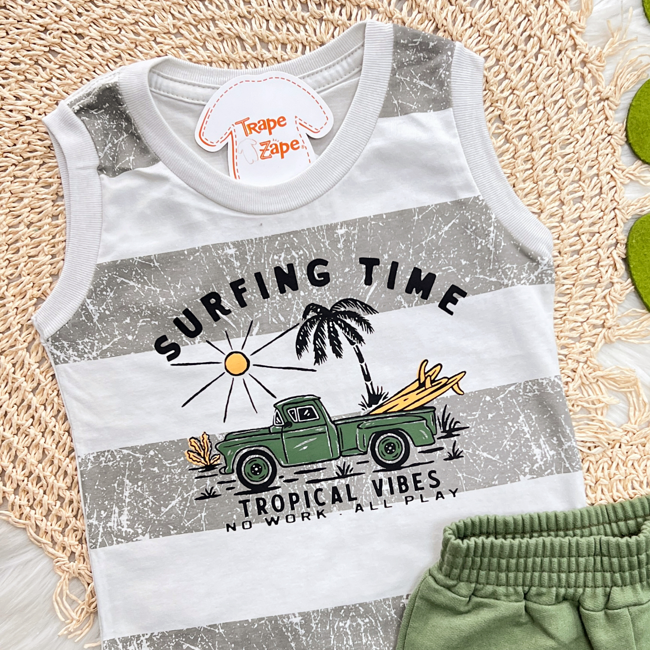 01- Regata em Malha - 100% Algodão 01- Bermuda em Moletinho - 100% Algodão