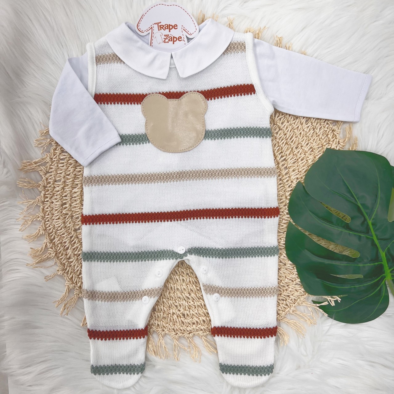 - Modelo: Macacão de Linha Hugo Ferrugem, bege e verde
