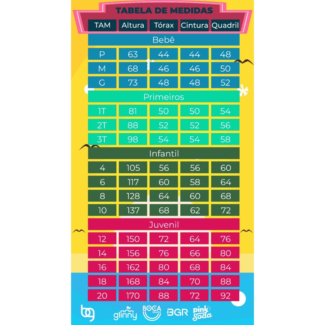 *Tamanhos de referência, podendo variar de criança para criança.