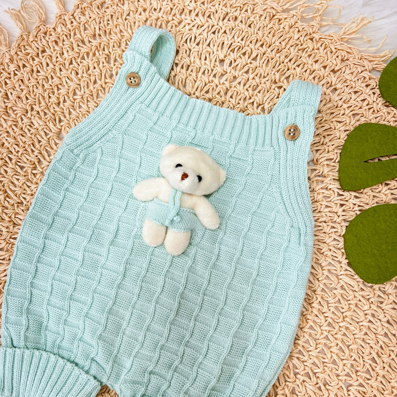 - Modelo: Jardineira Curta de Linha Ursinho - Verde Água