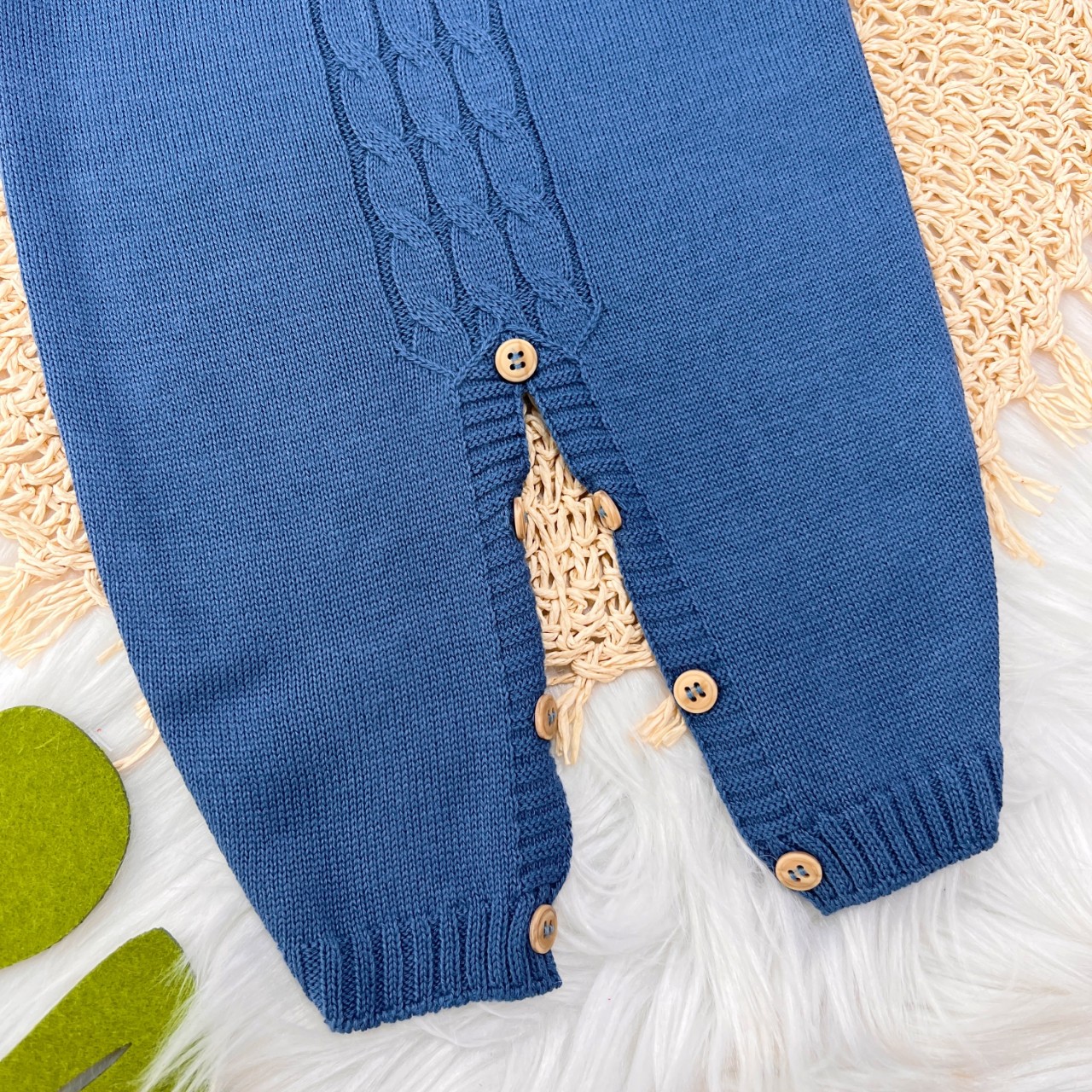 Casaco de linha com botão de madeira.TAM RN/P- de 0 a 3 mesesTAM M- de 3 a 6 mesesTAM G- de 6 a 9 m..