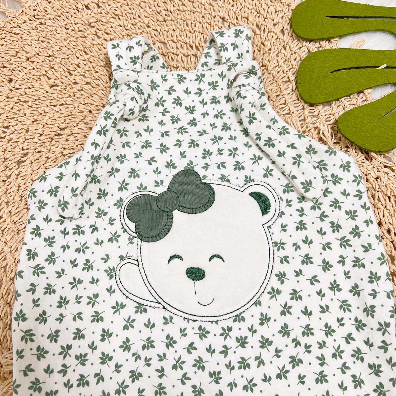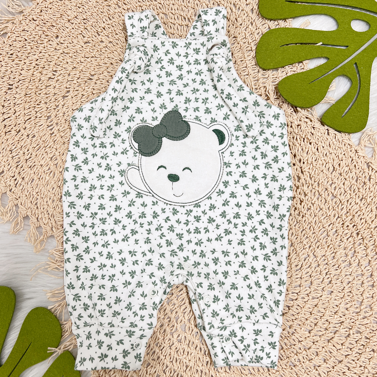Jardineira Nózinho - Ursinha com Laço - Verde Militar