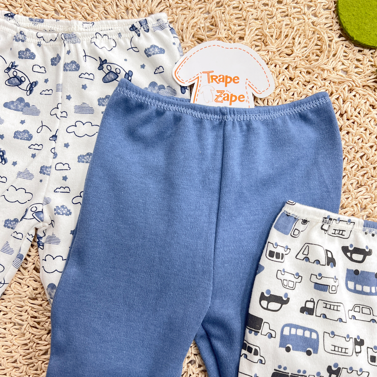 - Modelo: Kit 3 calças - Aviãozinho, Azul Jeans, Carrinhos