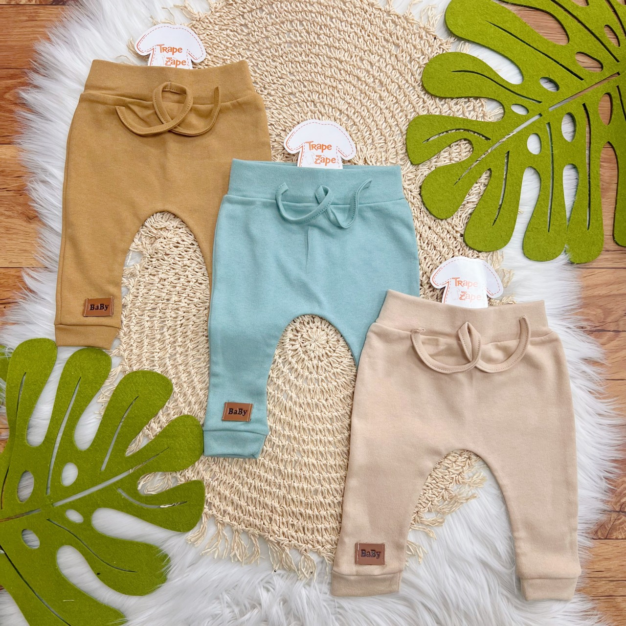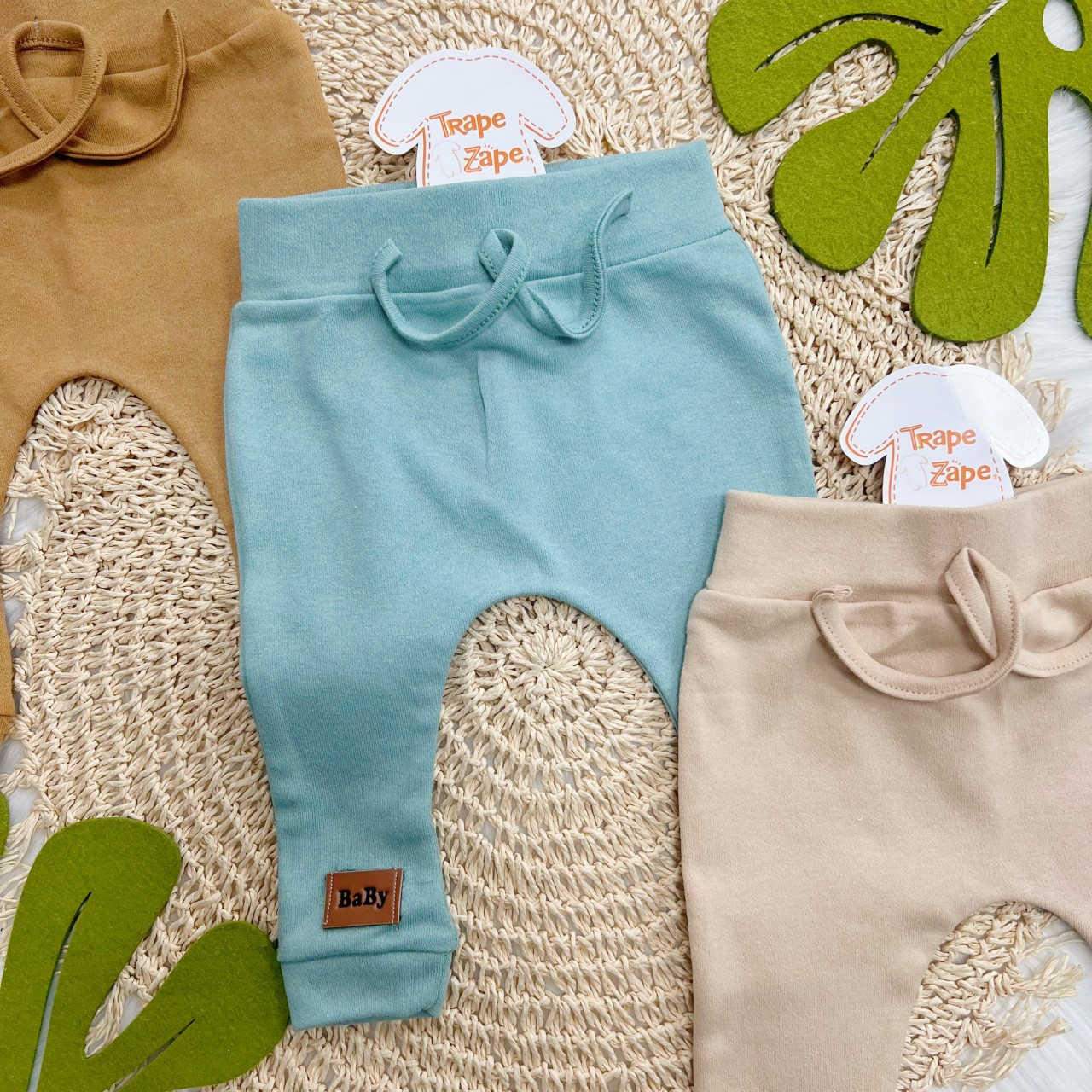 - Modelo: Kit 3 Calças - Baby - Caramelo, Verde e Areia