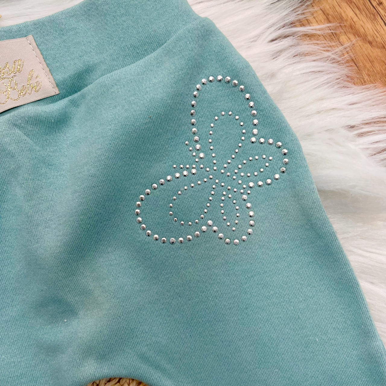 - Modelo: Kit 3 Calças - Borboletas de Strass - Rosa,Off e Verde