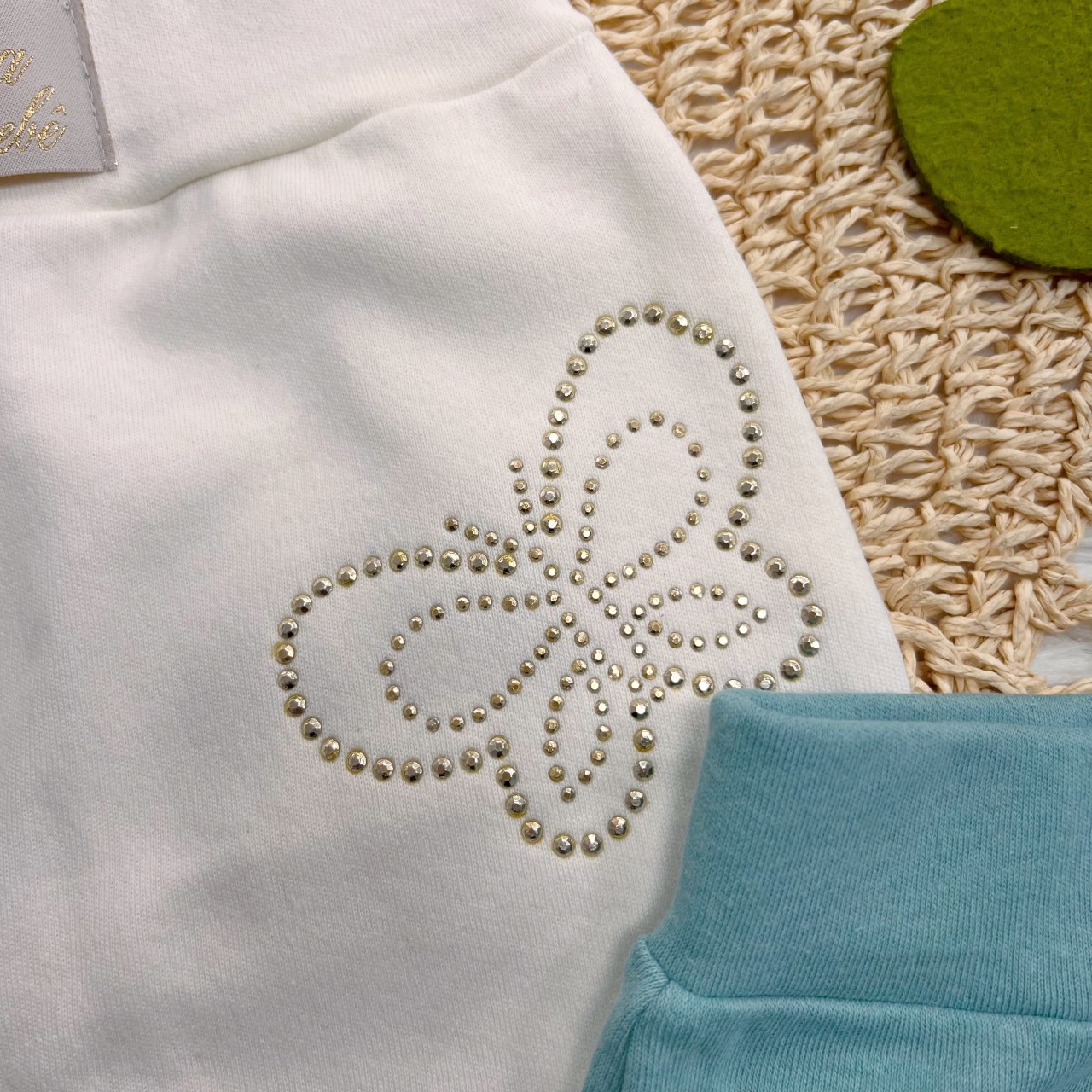 Kit 3 Calças - Borboletas de Strass - Rosa,Off White e Verde