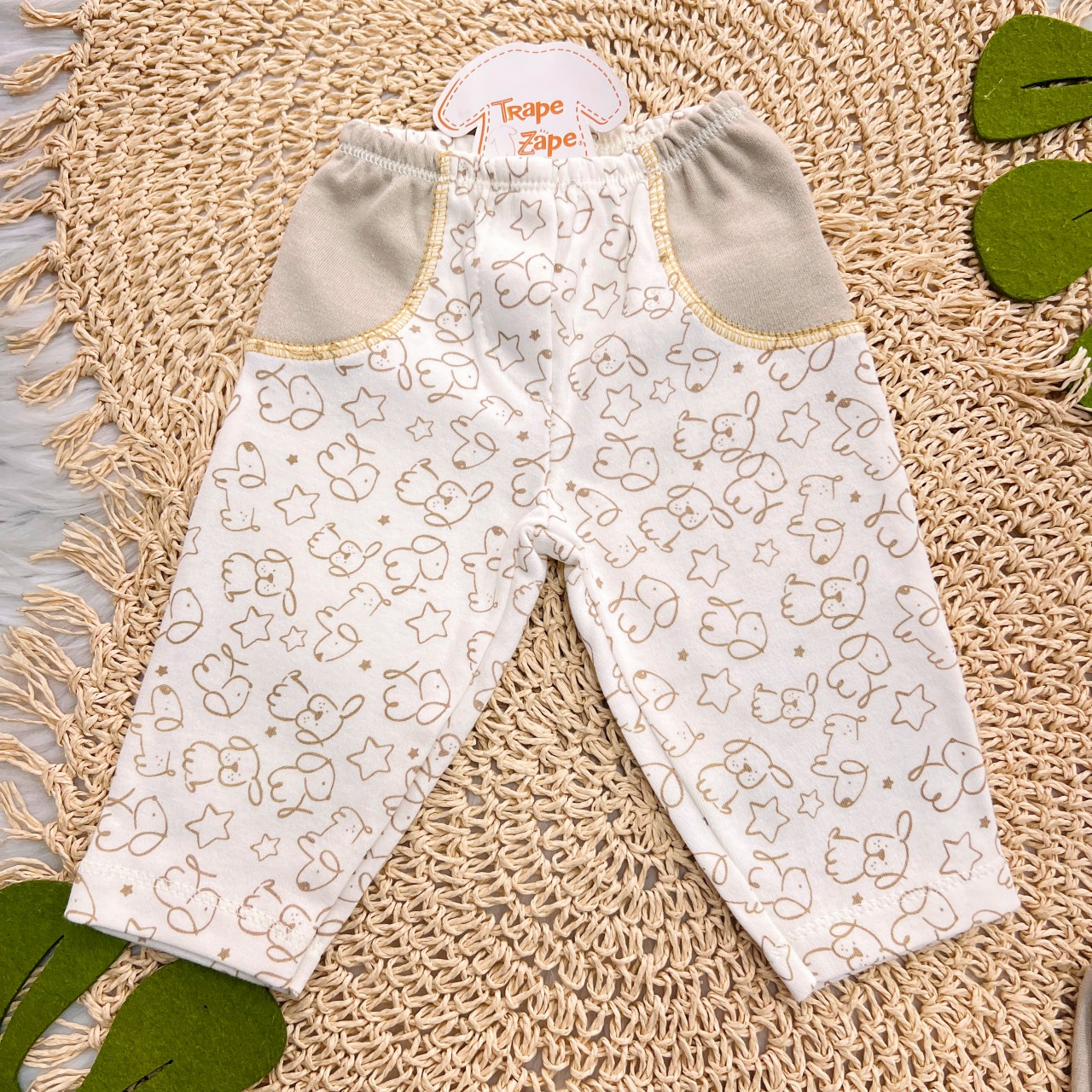 Kit 3 Calças - Elefantinho e Doguinho- Areia, Off White e Mostarda