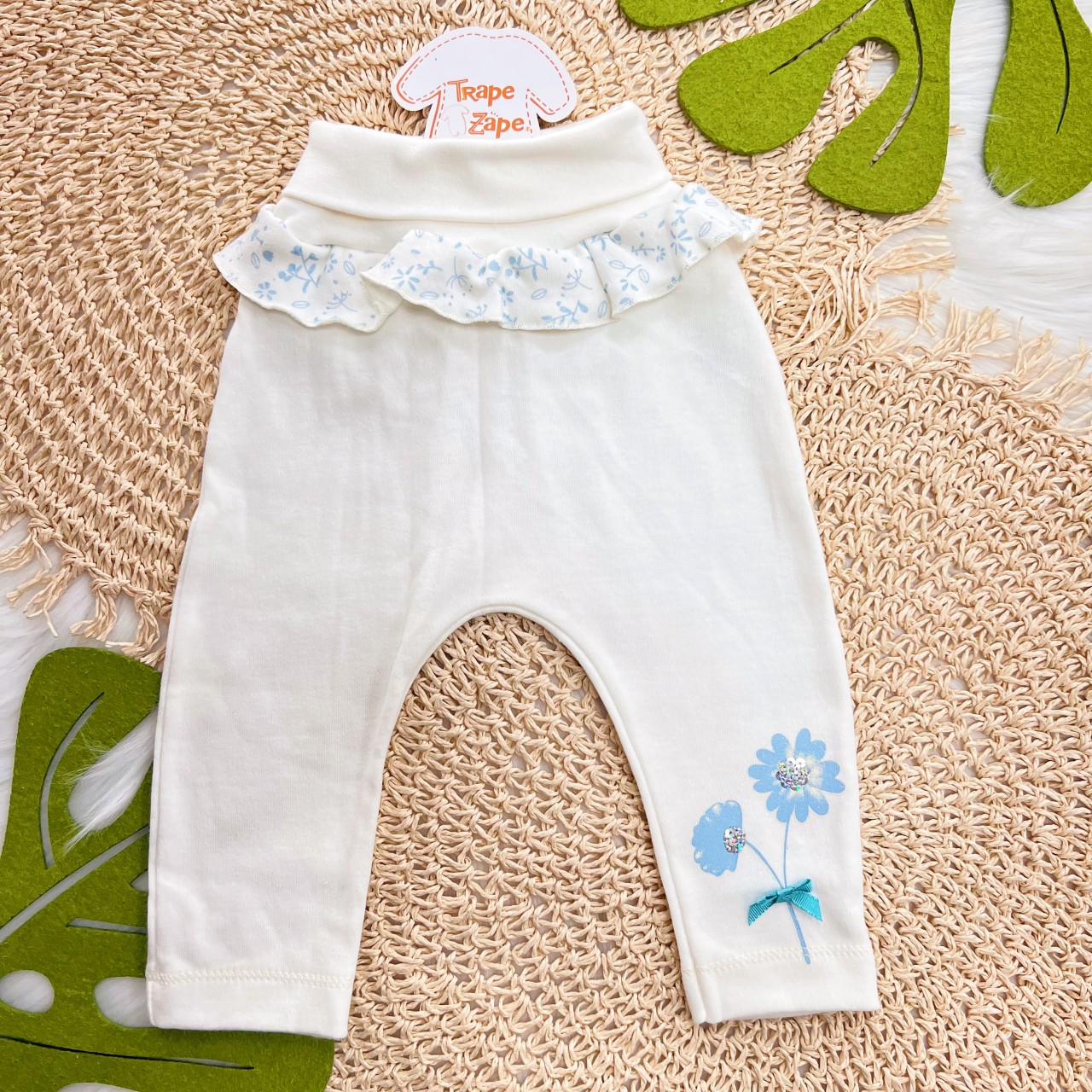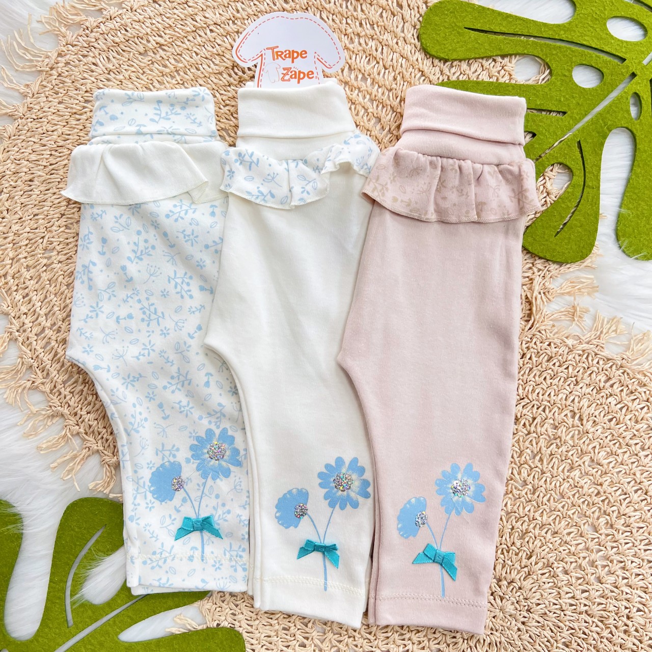- Modelo: Kit 3 Calças - Flores com Paetê - Branco, Off e Areia