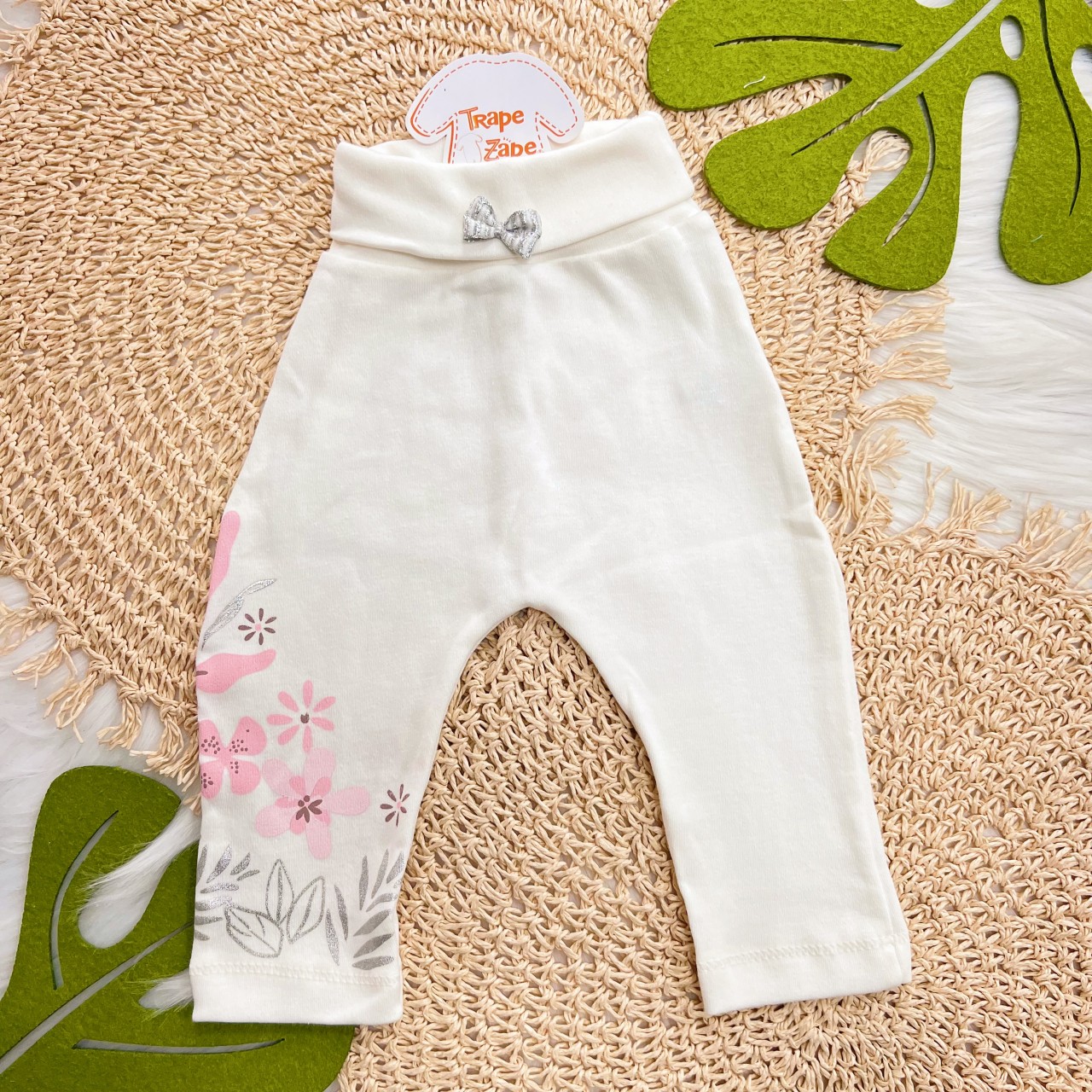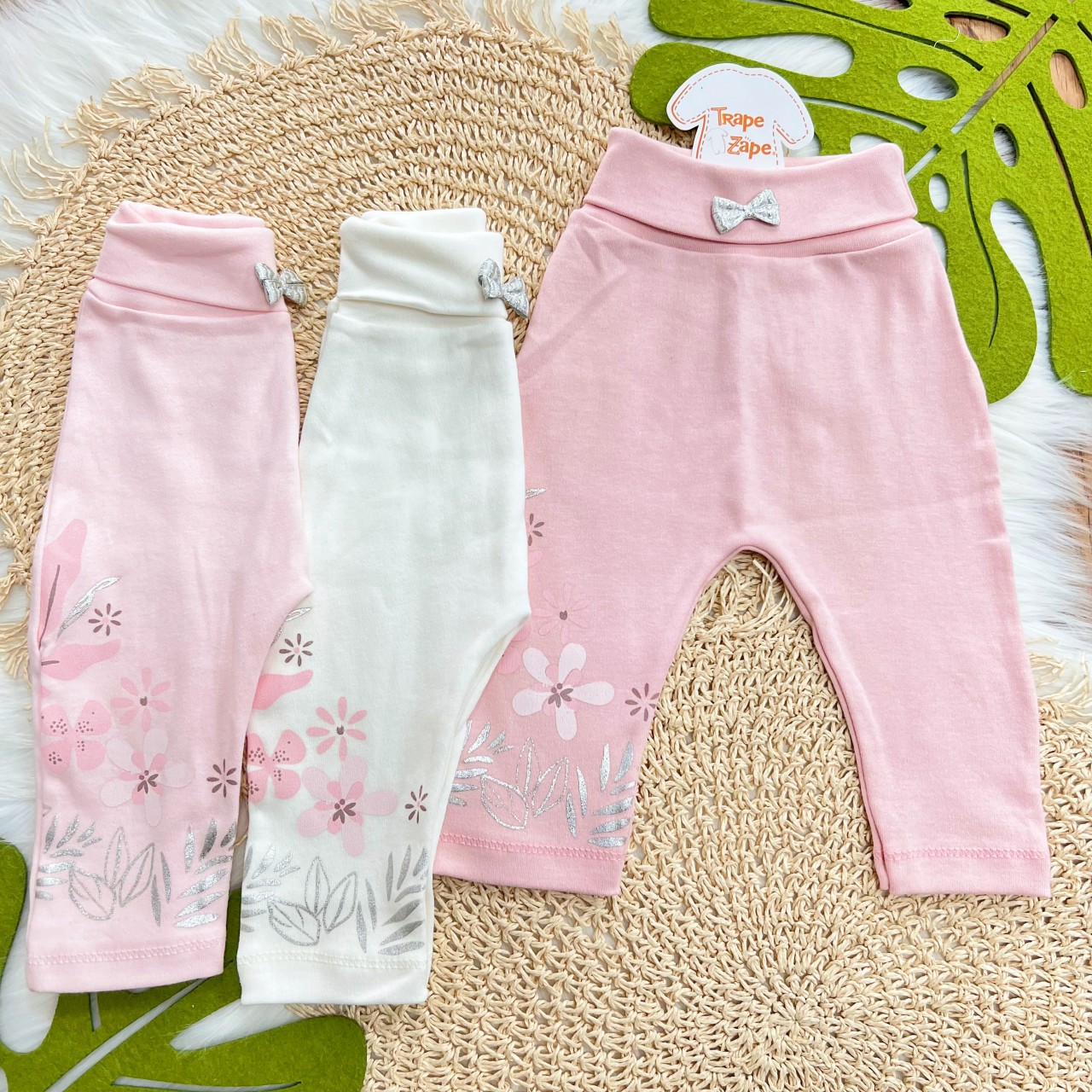 - Modelo: Kit 3 Calças - Flores e Plantas Prateadas - Rosa, Off e Rose