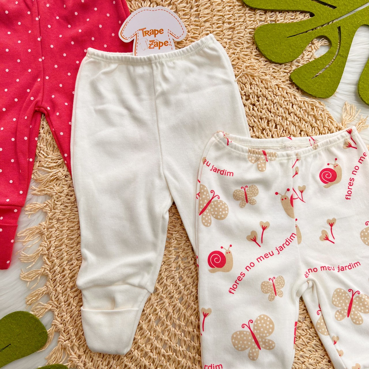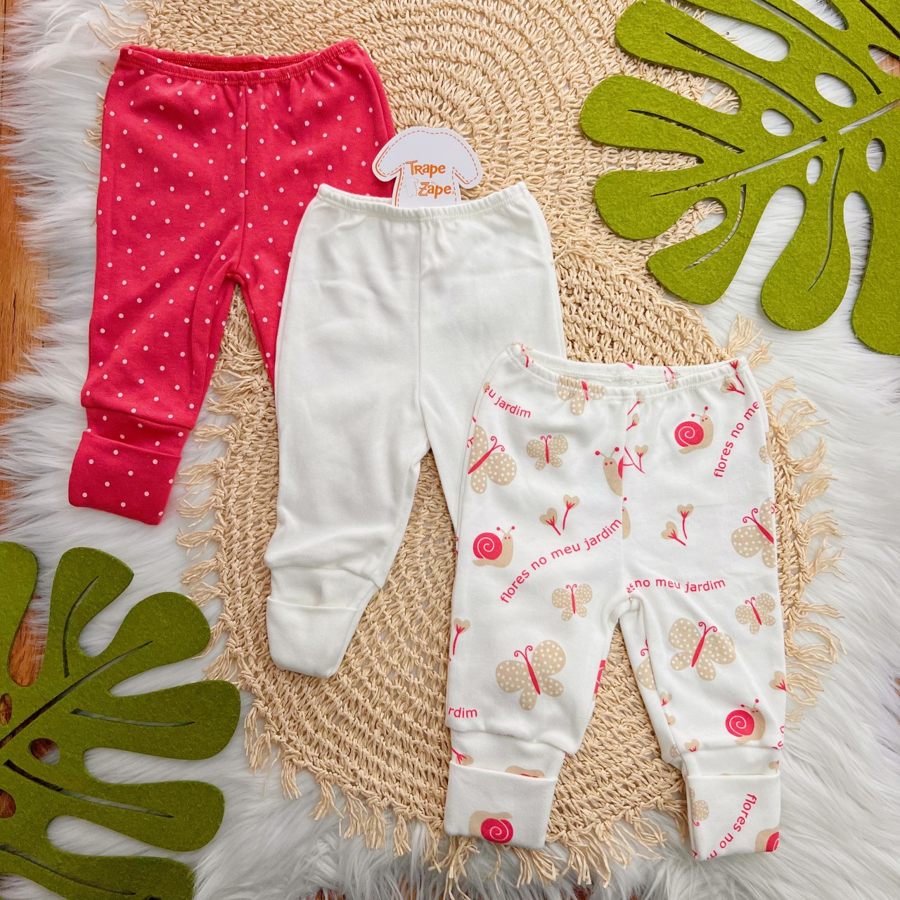 - Modelo: Kit 3 Calças - Flores no Meu Jardim, Off e Poá