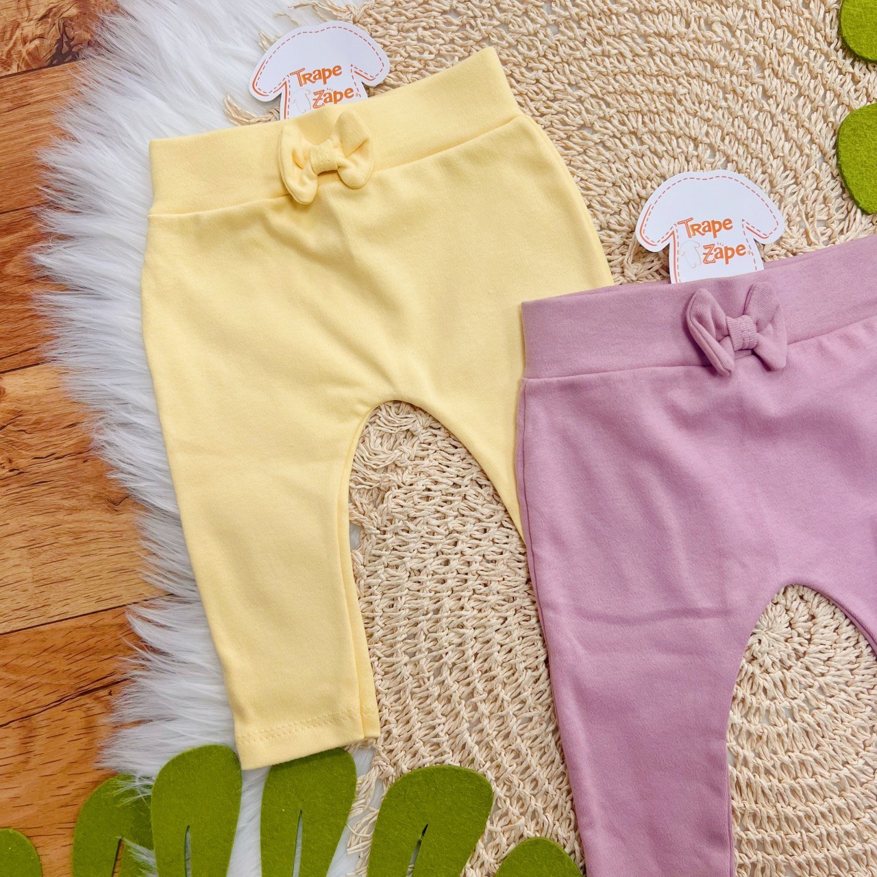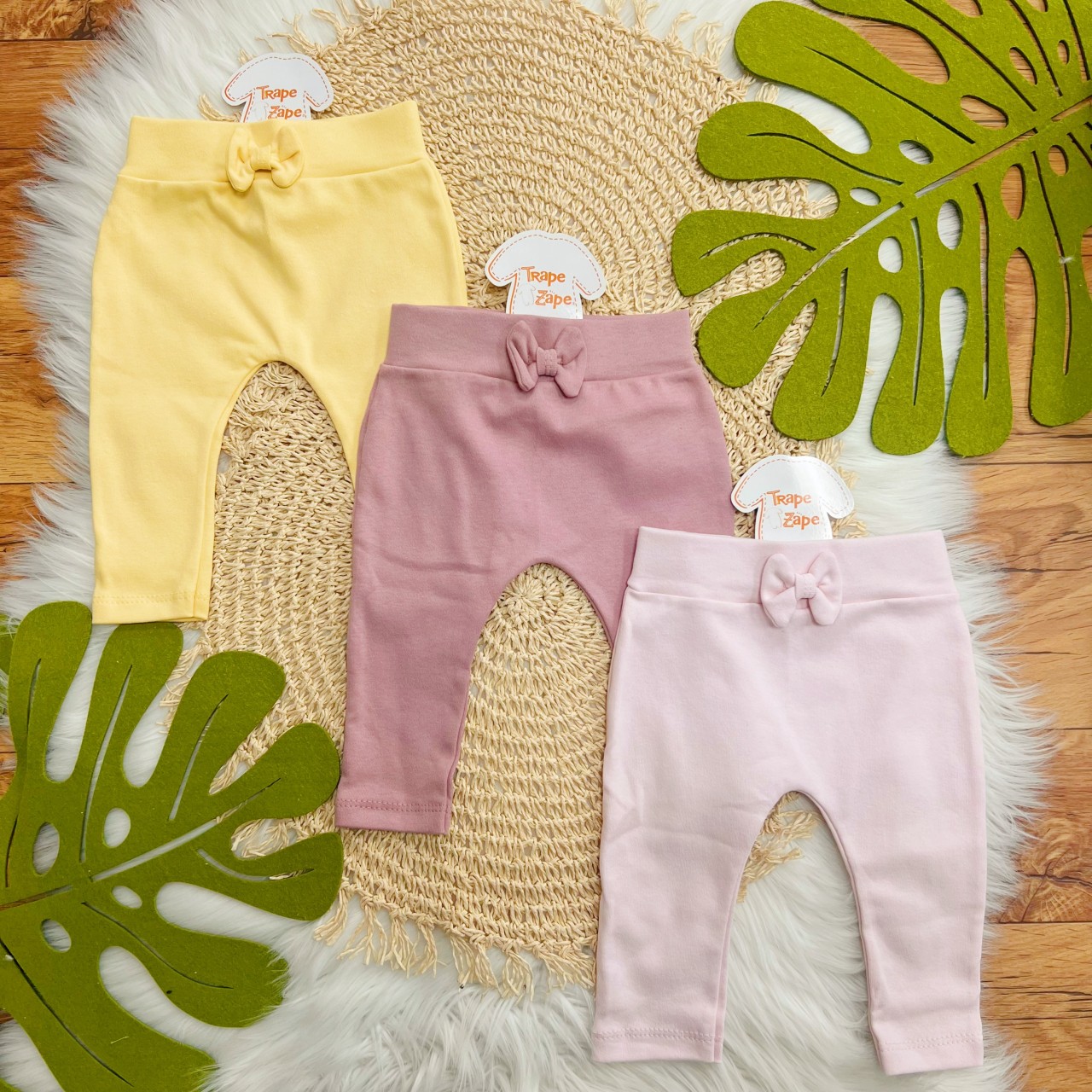 - Modelo: Kit 3 Calças - Lacinhos - Amarelo, Uva e Rosa