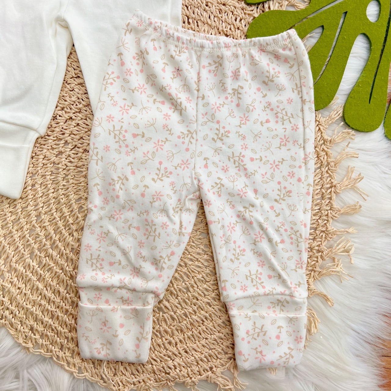 Kit 3 Calças - Libélulas, Off White e Raminhos - Off White e Rose