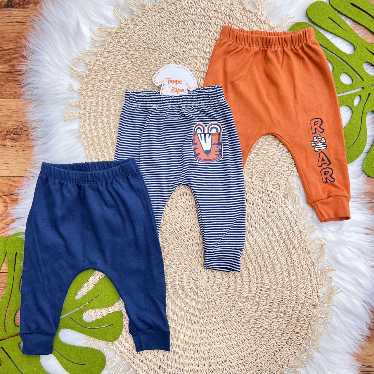 - Modelo: Kit 3 Calças - Tigre Roar - Ferrugem, Marinho e Listrado