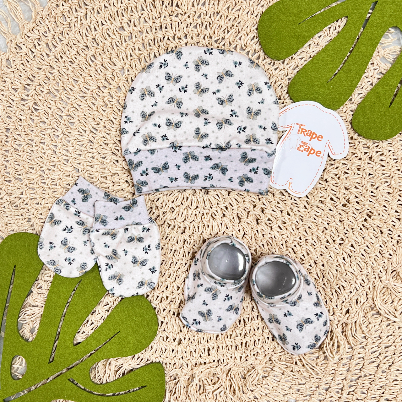 kit com 1 touca, 1 par de luva e 1 par de sapatinho - 100% algodão