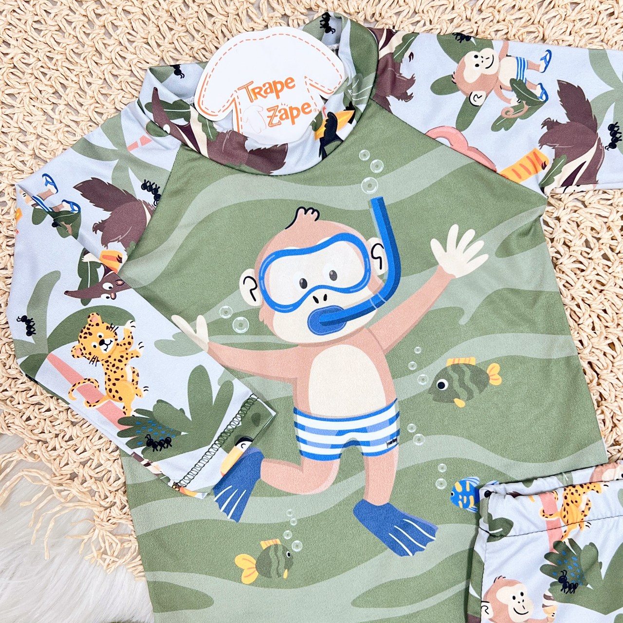 Tags:Linha, Praia, Blusa, Proteção, Macaquinho, Sunga, Verde