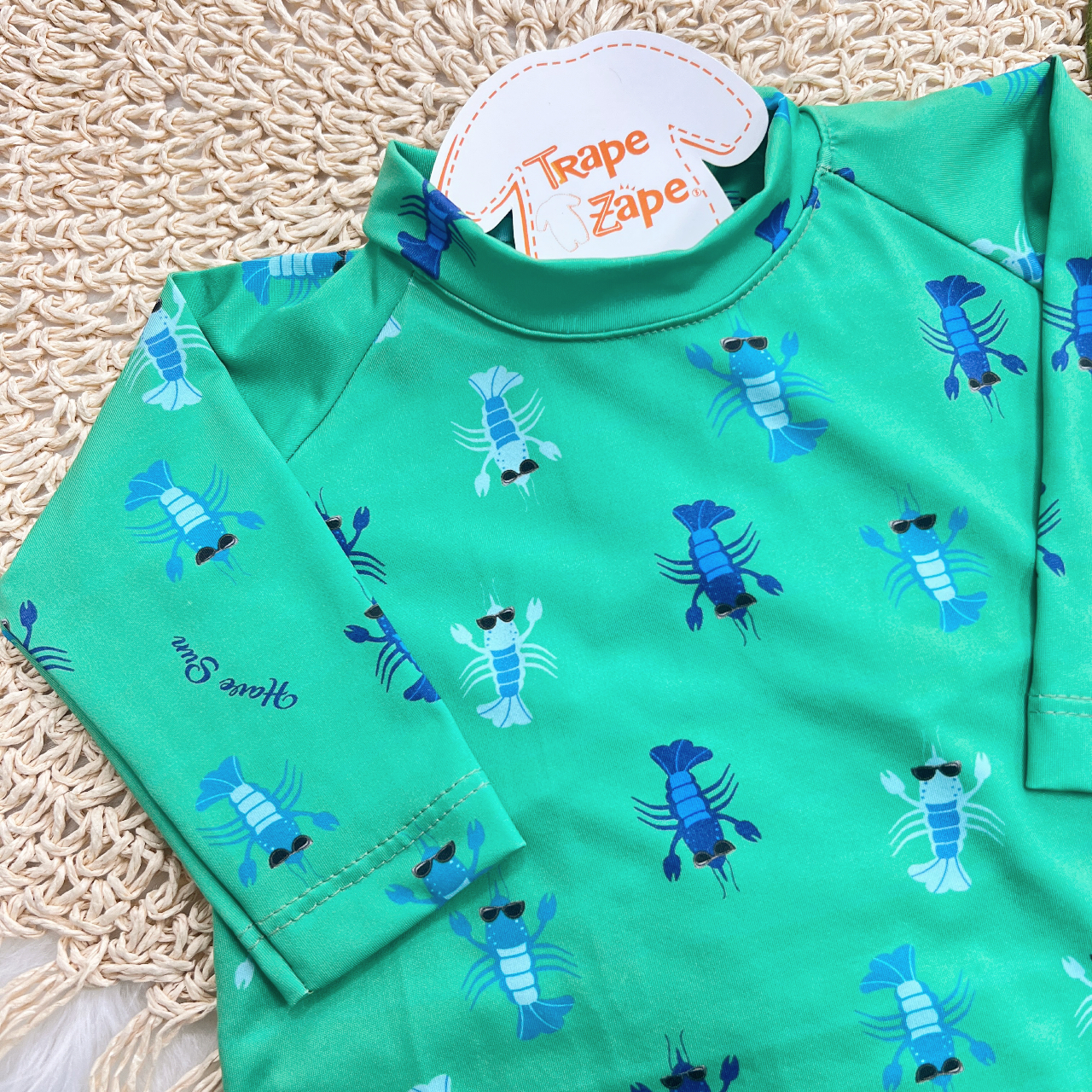 Tags:Linha, Praia, Macacão, Curto, Lagostas, Proteção, UV50+, Verde