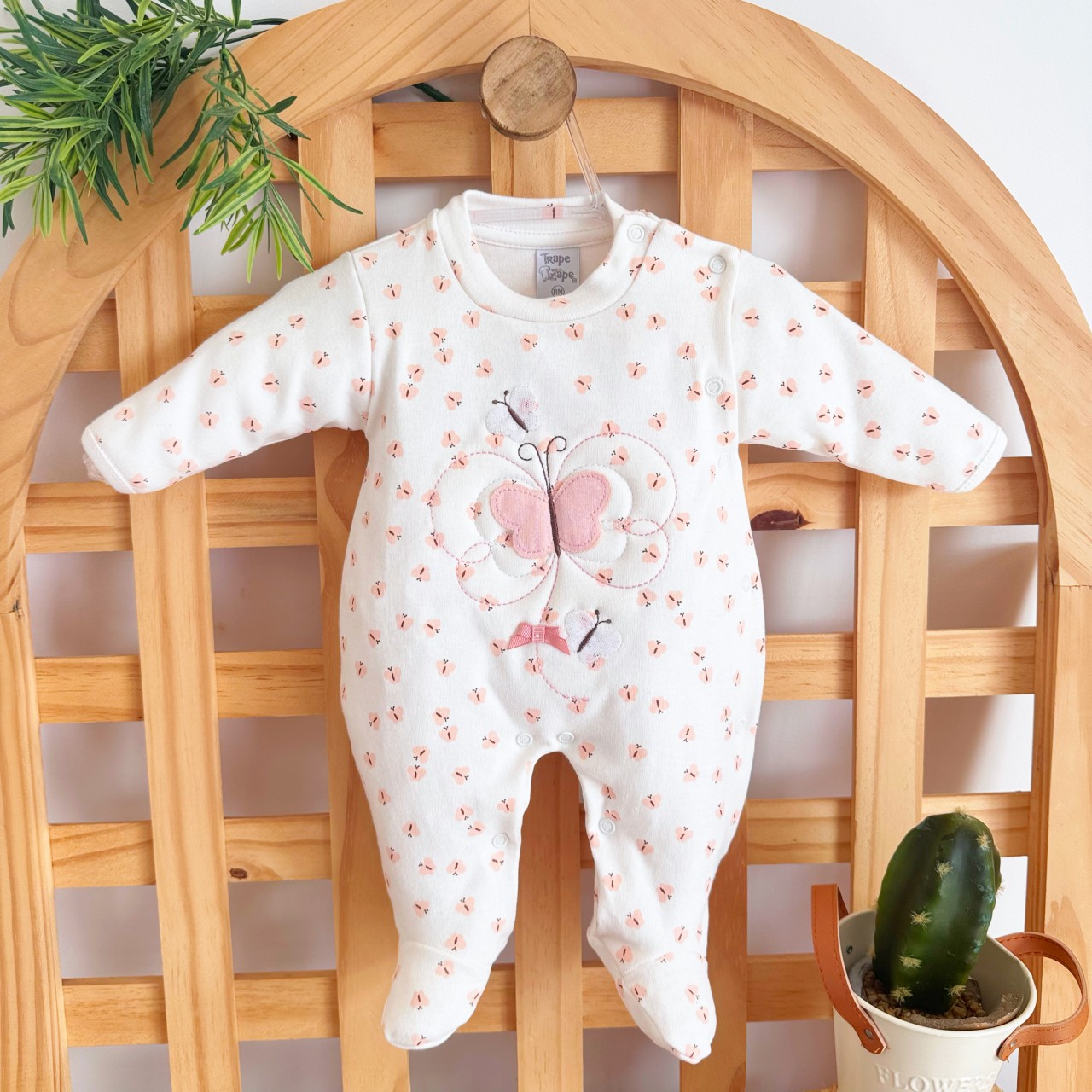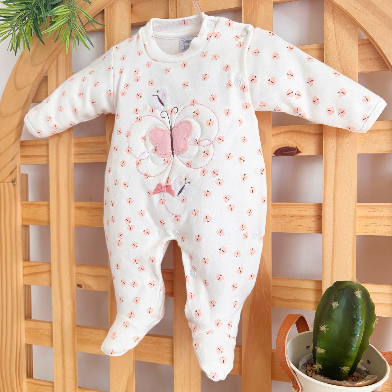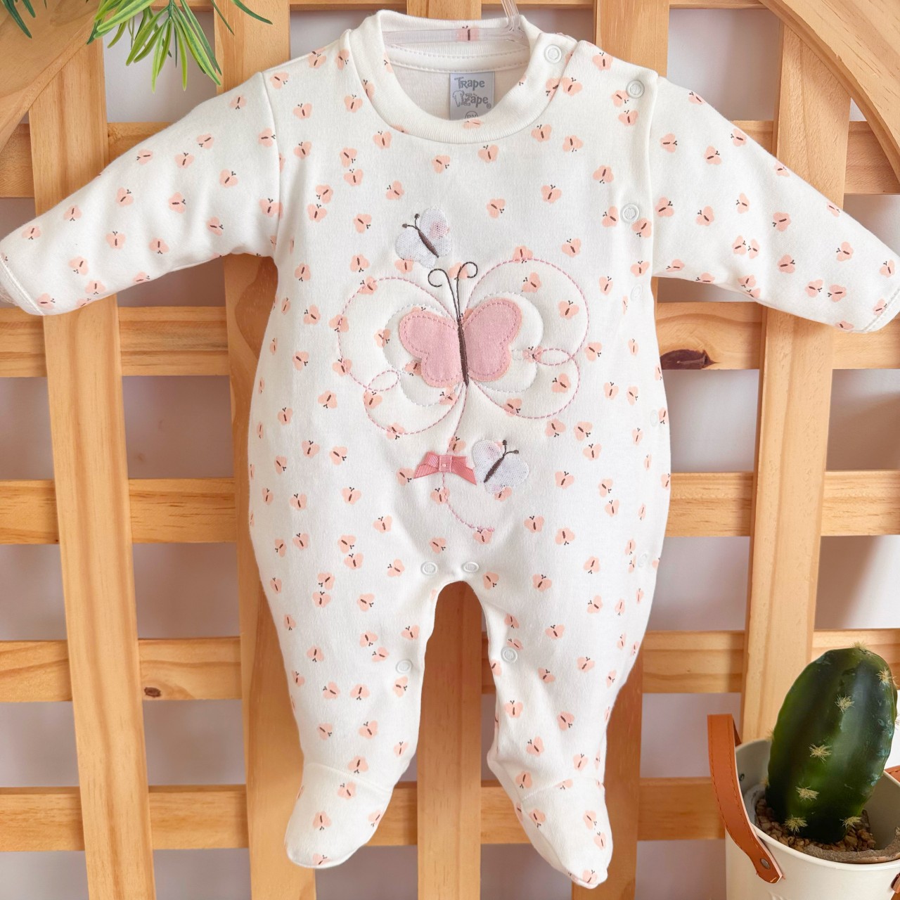 Macacão Malha Trape Zape - Borboleta e Borboletinhas - Off White e Rose