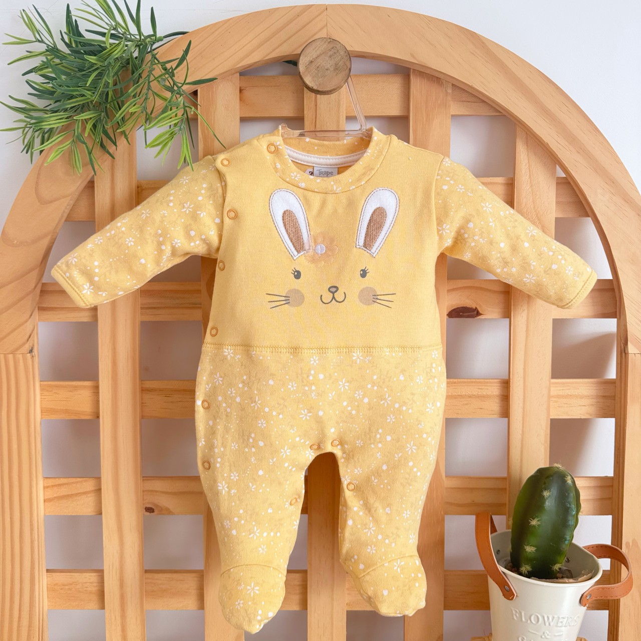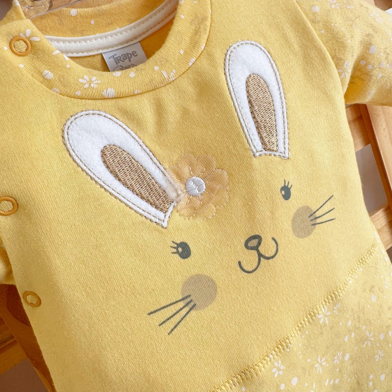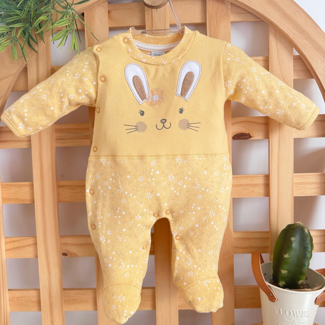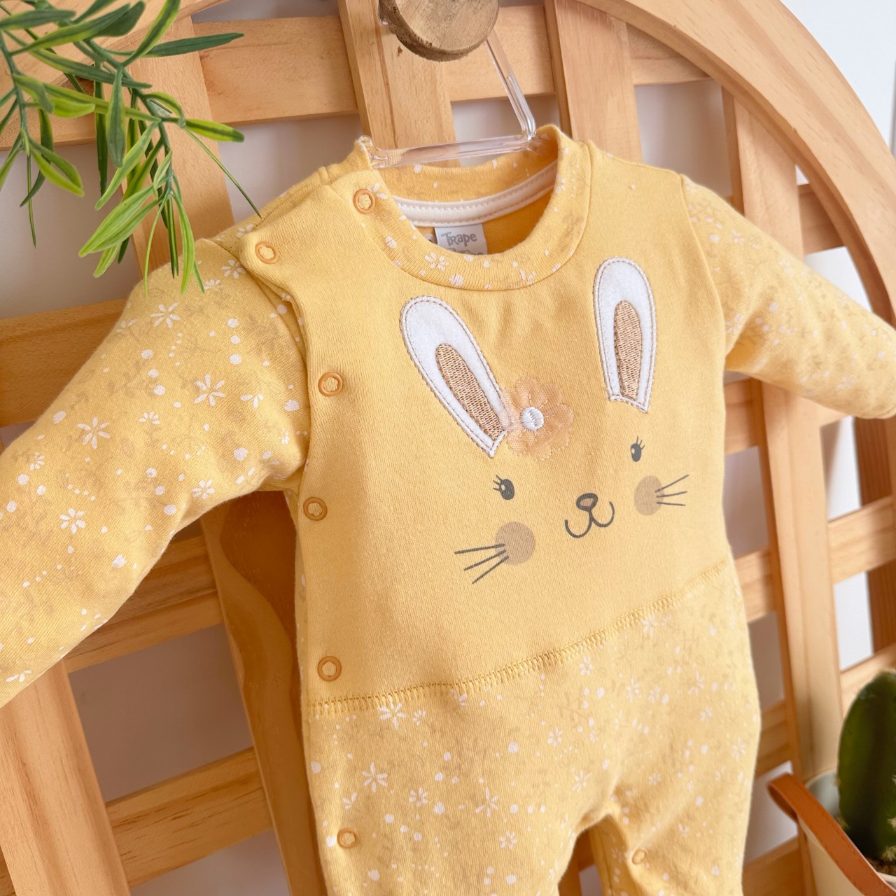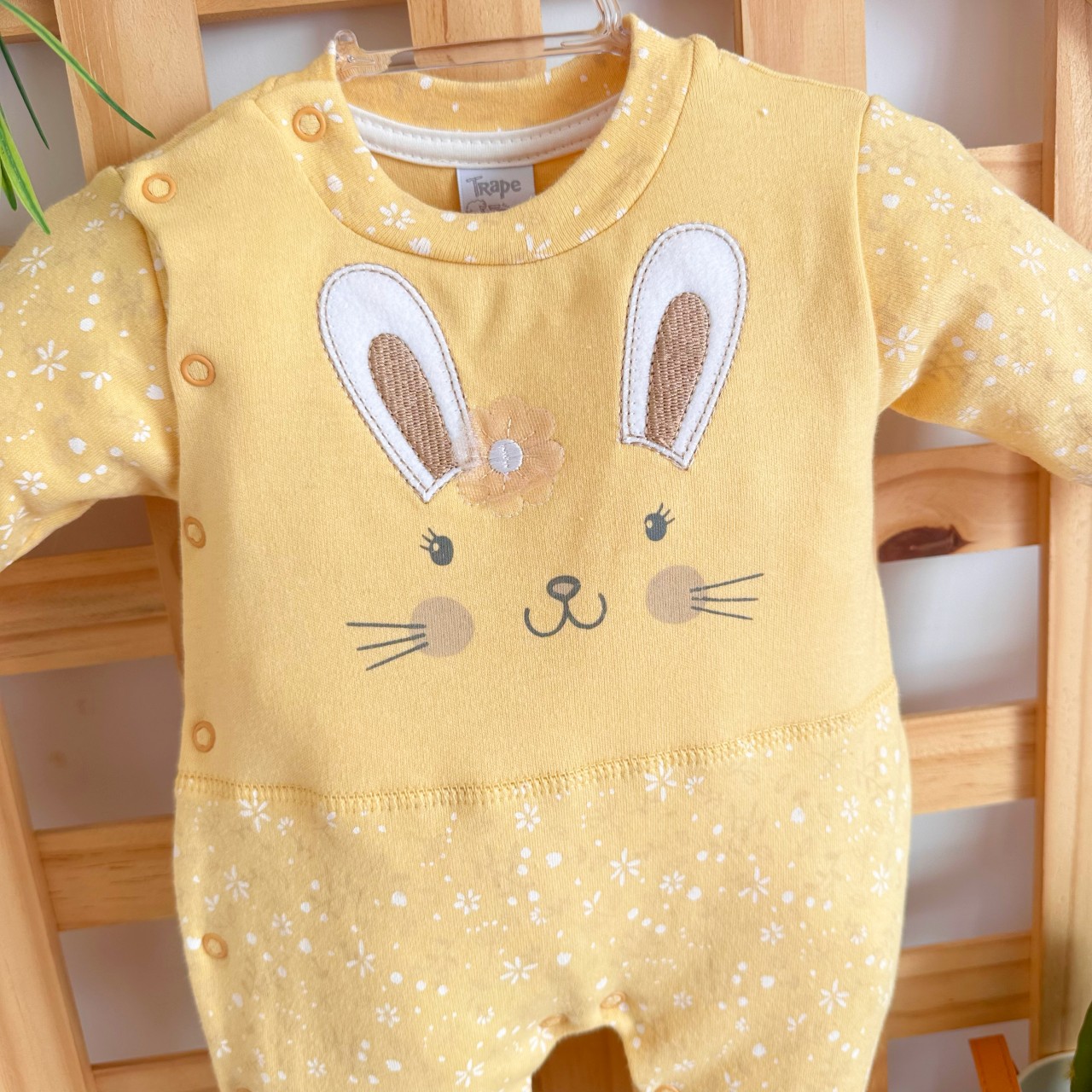 - Modelo: Macacão Trape Zape- Coelhinha com Flor Amarela - Amarelo