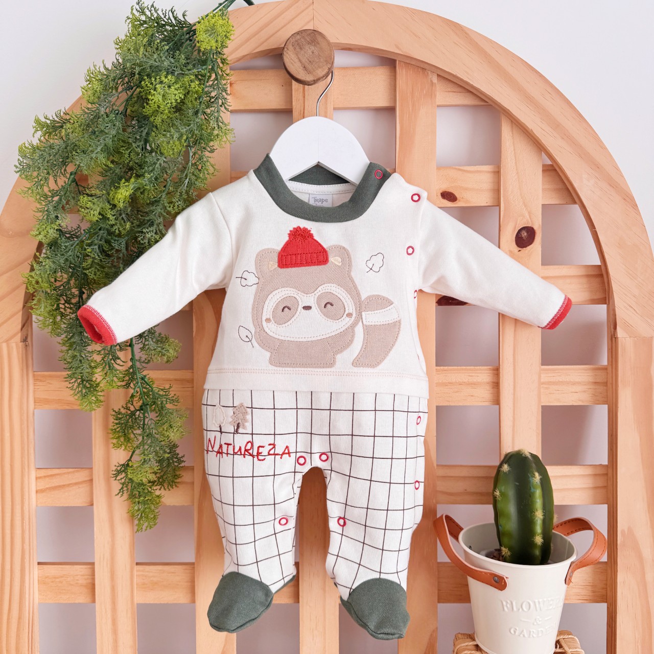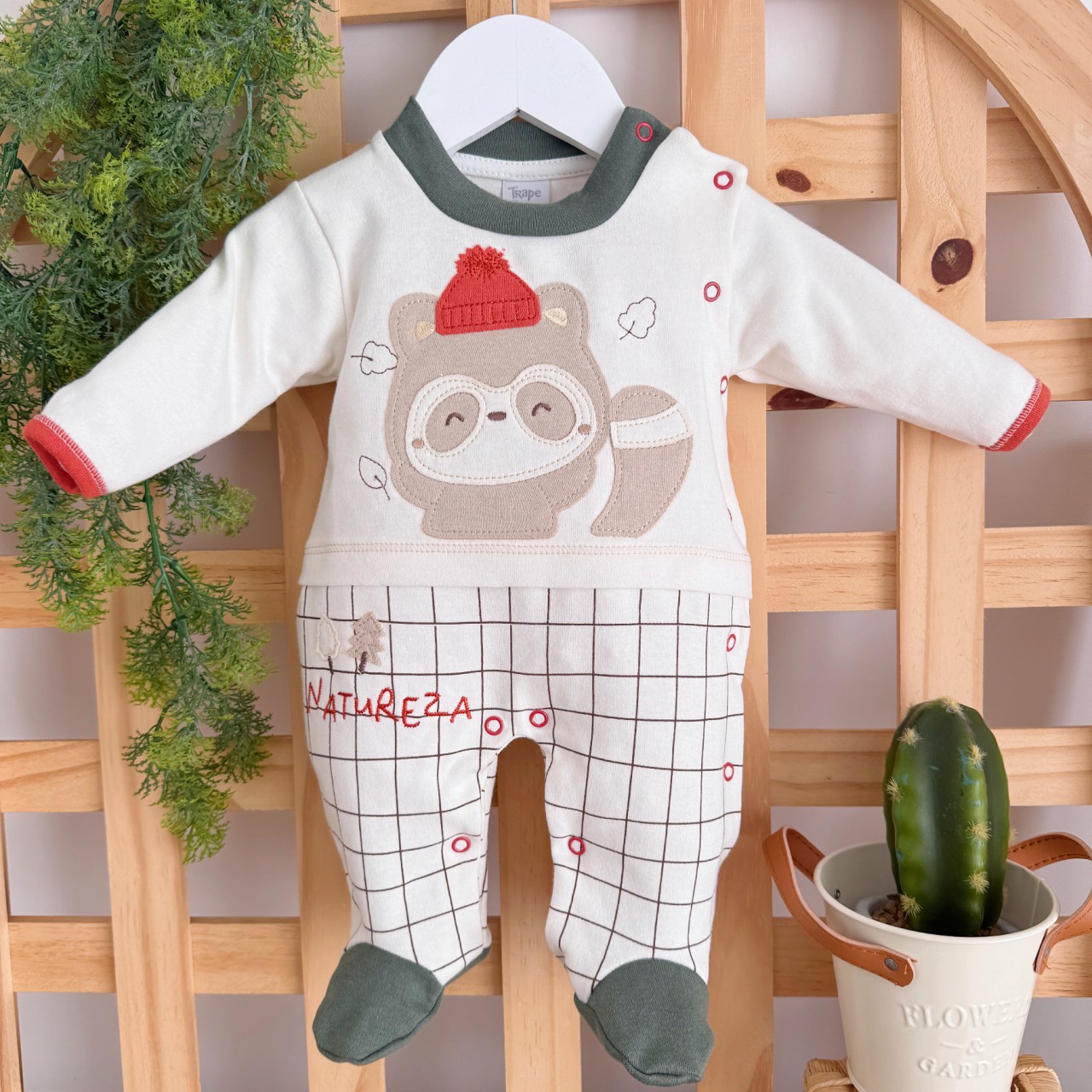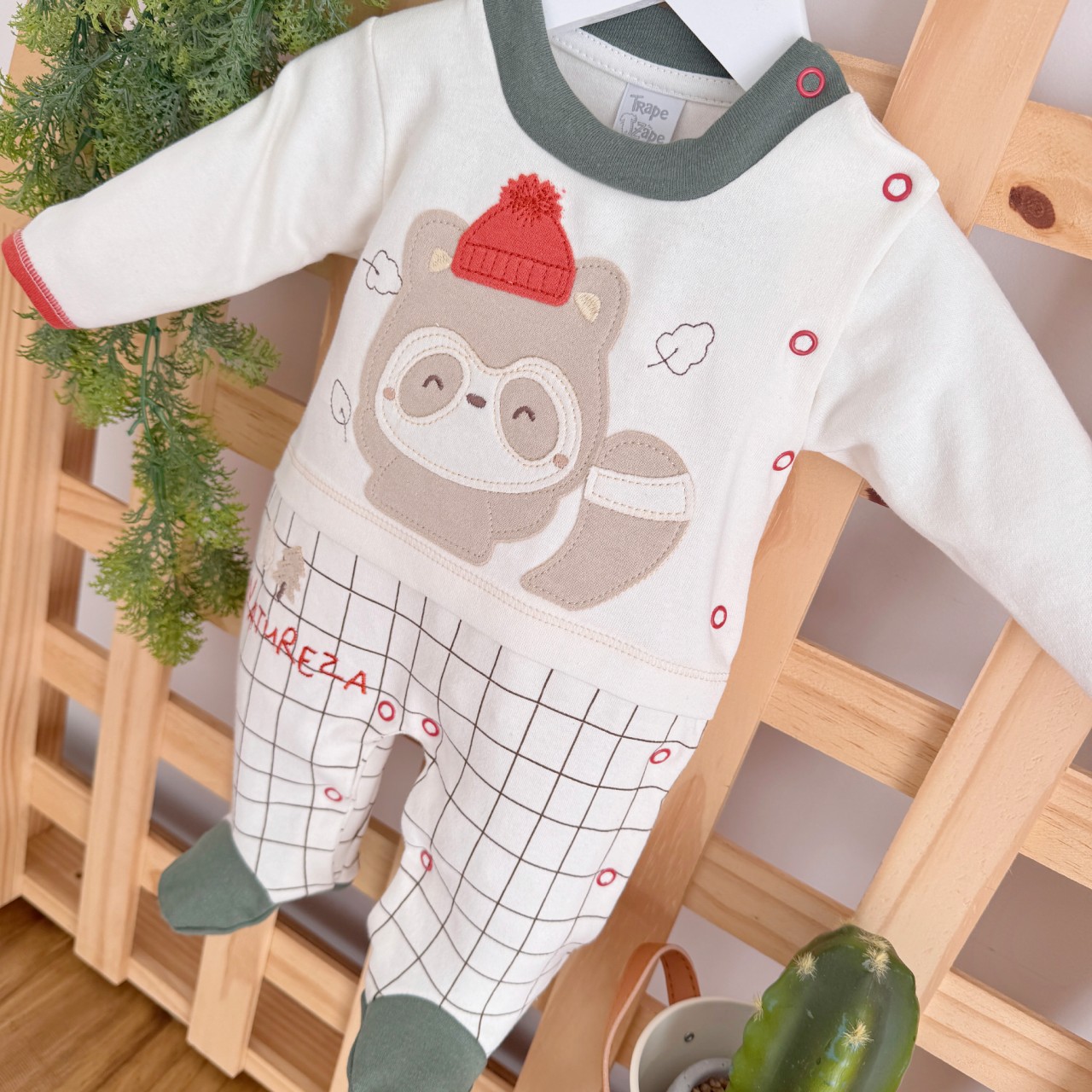 - Modelo: Macacão Trape Zape - Natureza - Off White e Verde Militar