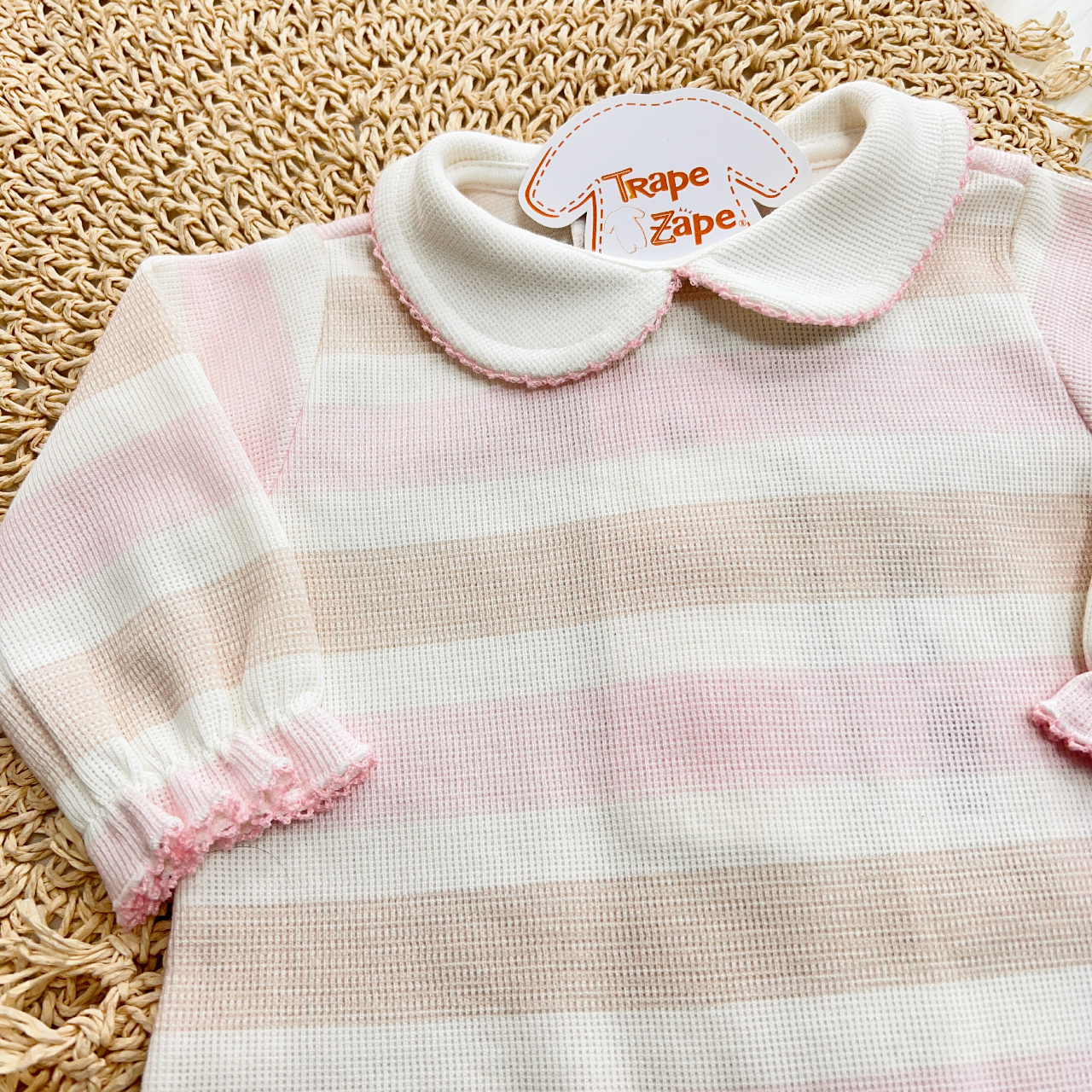 Macacão Tricotil (Tricot 100% Algodão) com Gola e Estampa Digital - Off White com Napolitano