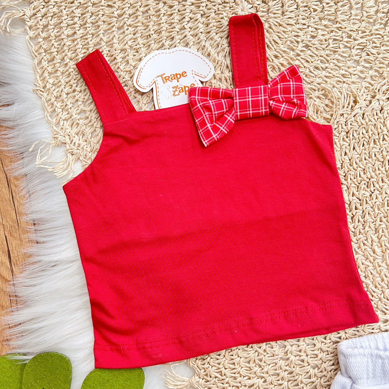 Tags:Natal, Conj., Regata, Lacinho, Xadrez, Short, Renas, Vermelho, Branco