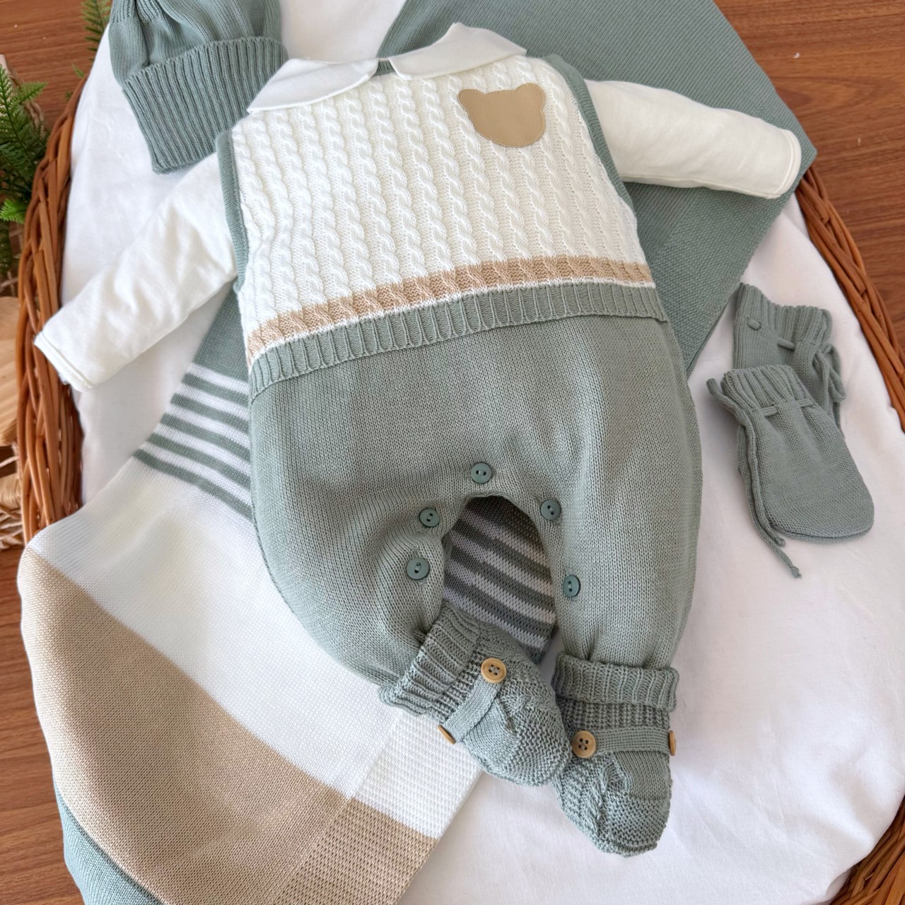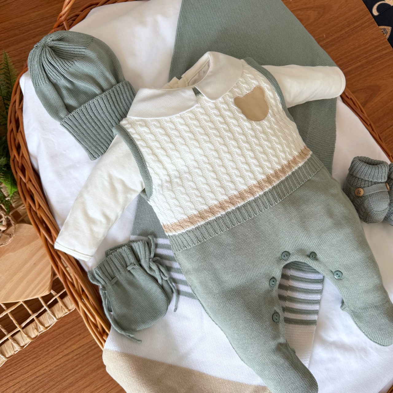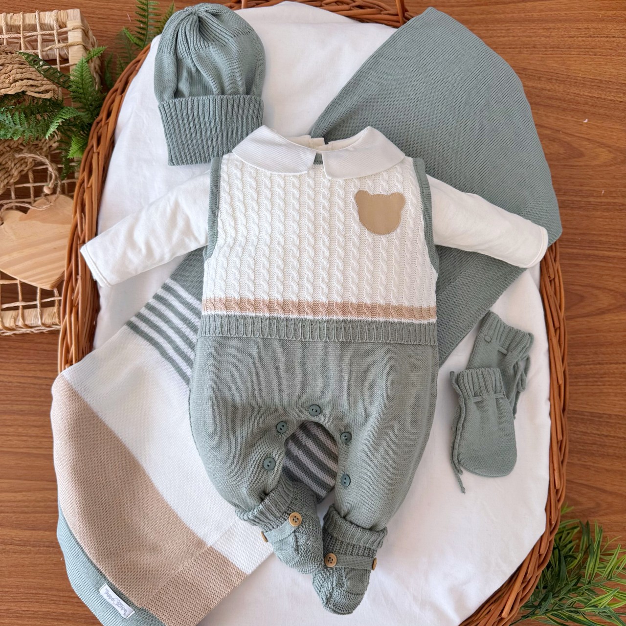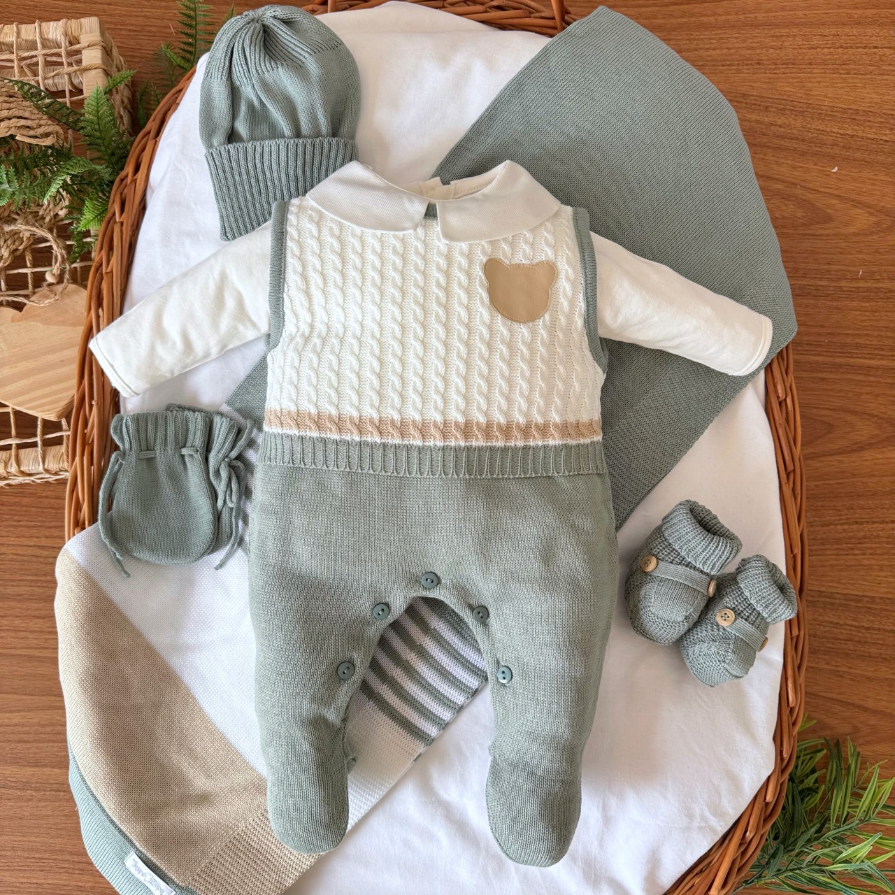 - Modelo: Saída de Maternidade Guilherme - Verde e Areia