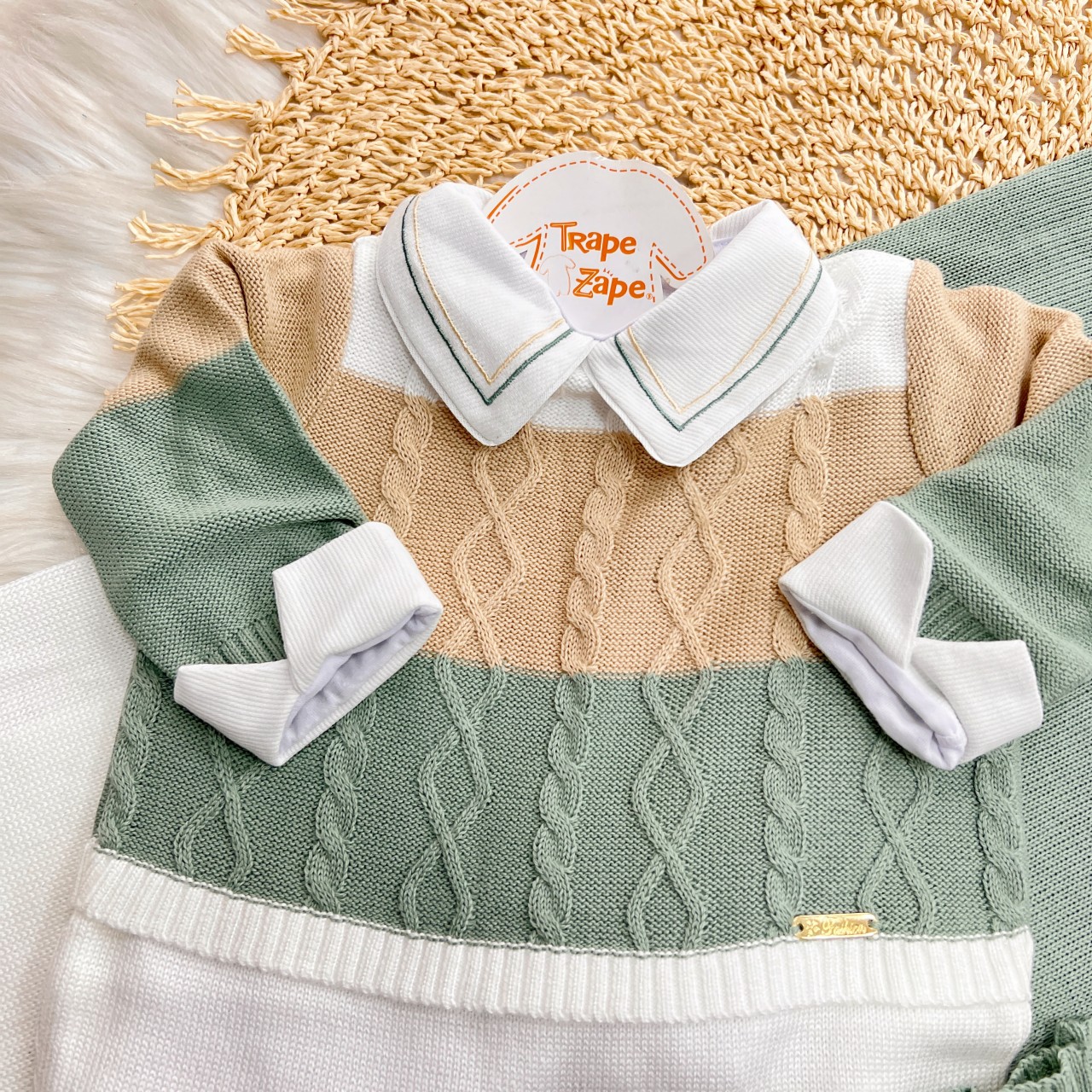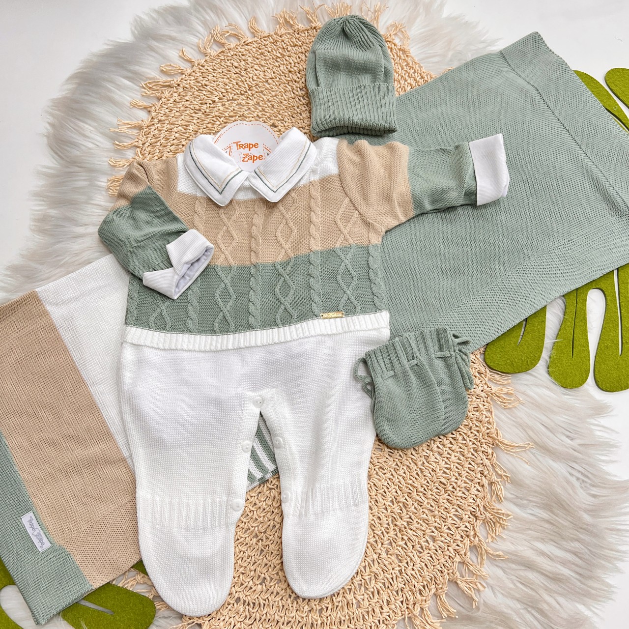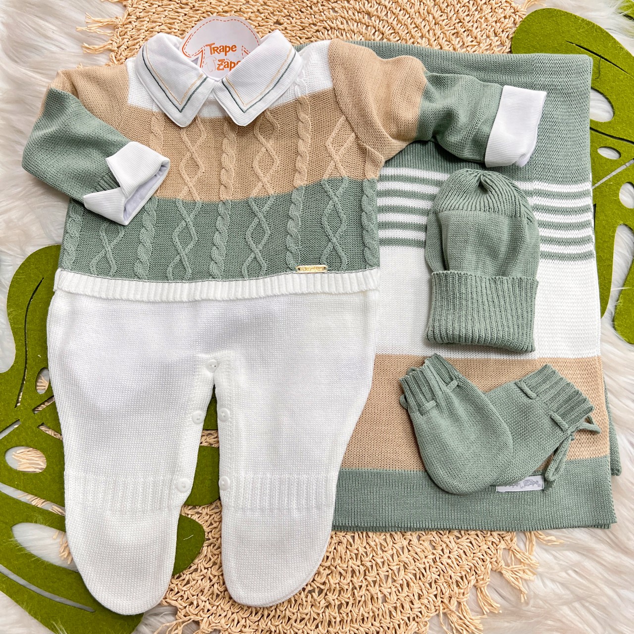 - Modelo: Saída de Maternidade Nicolas - Verde e Areia