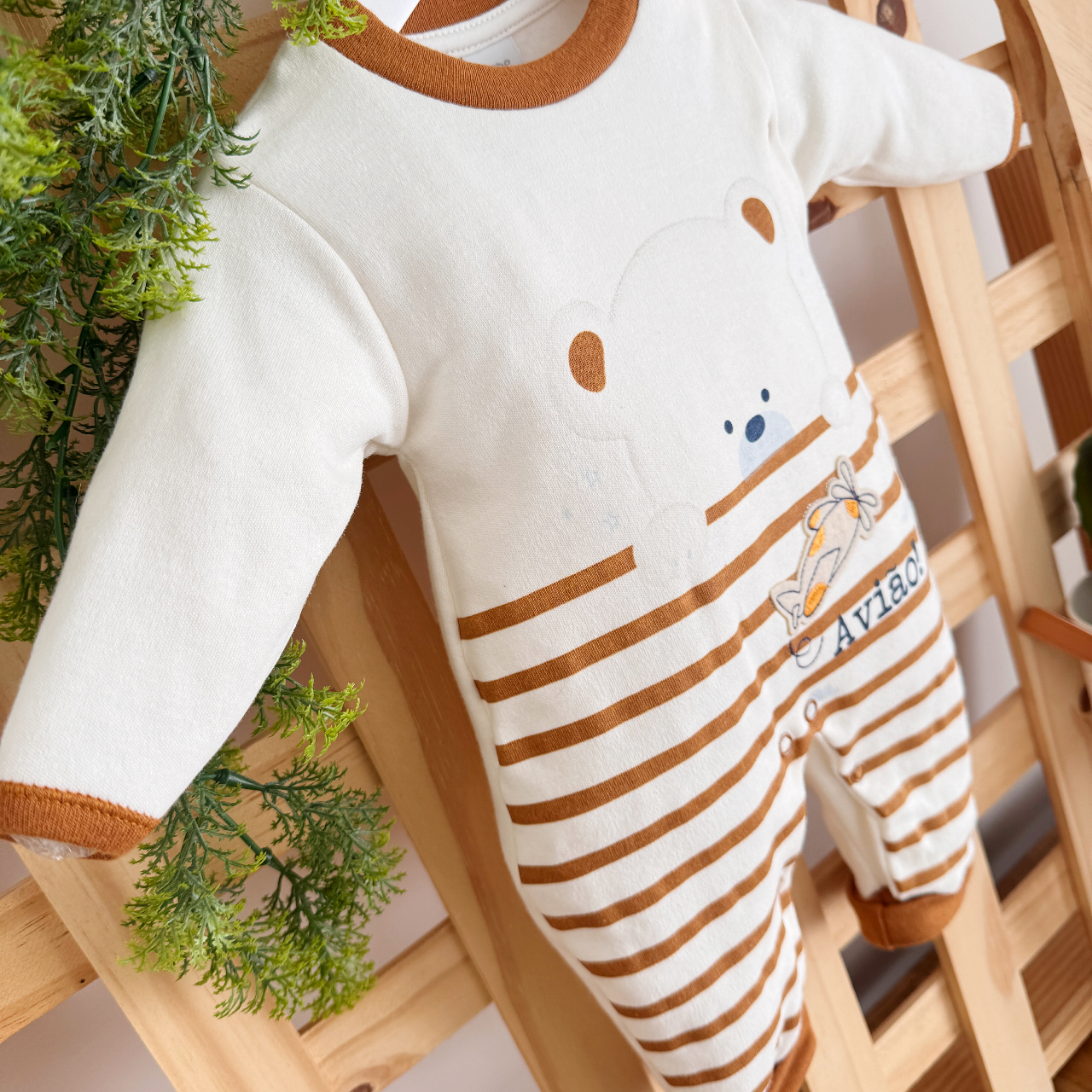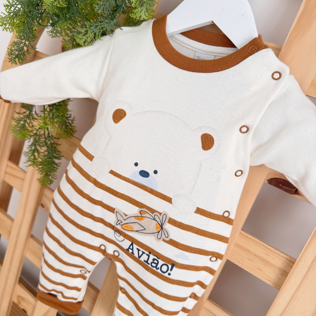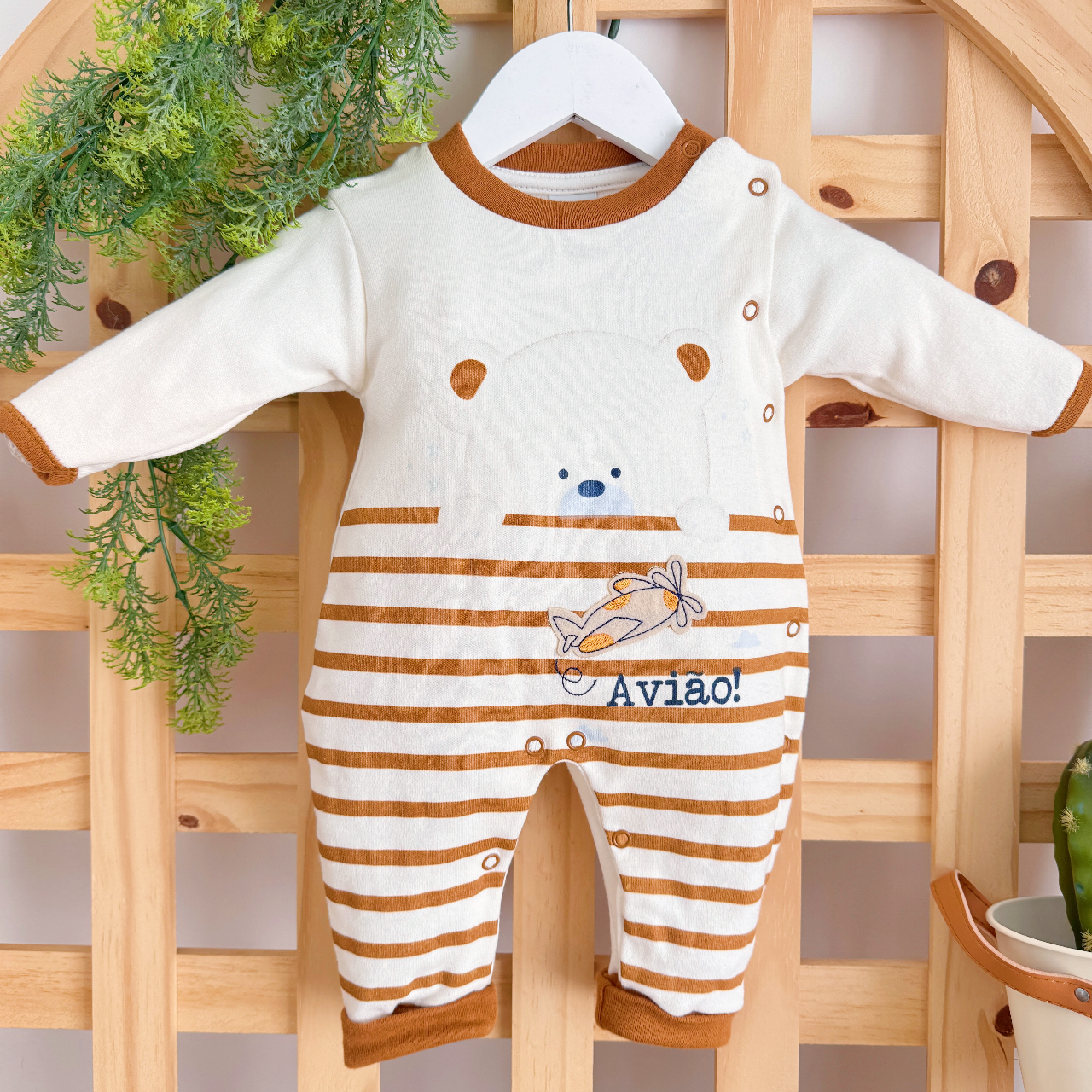 - Modelo: Macacão Trape Zape- Avião e Ursinho - Off e Ferrugem