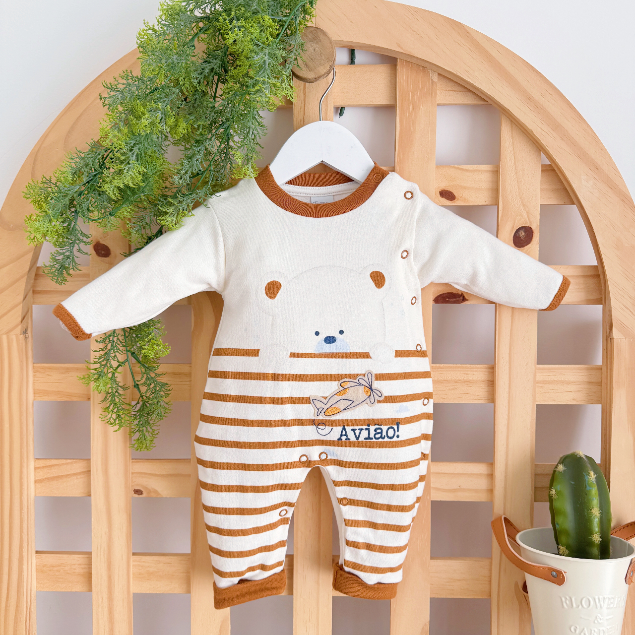 Macacão Trape Zape- Avião e Ursinho - Off White e Ferrugem